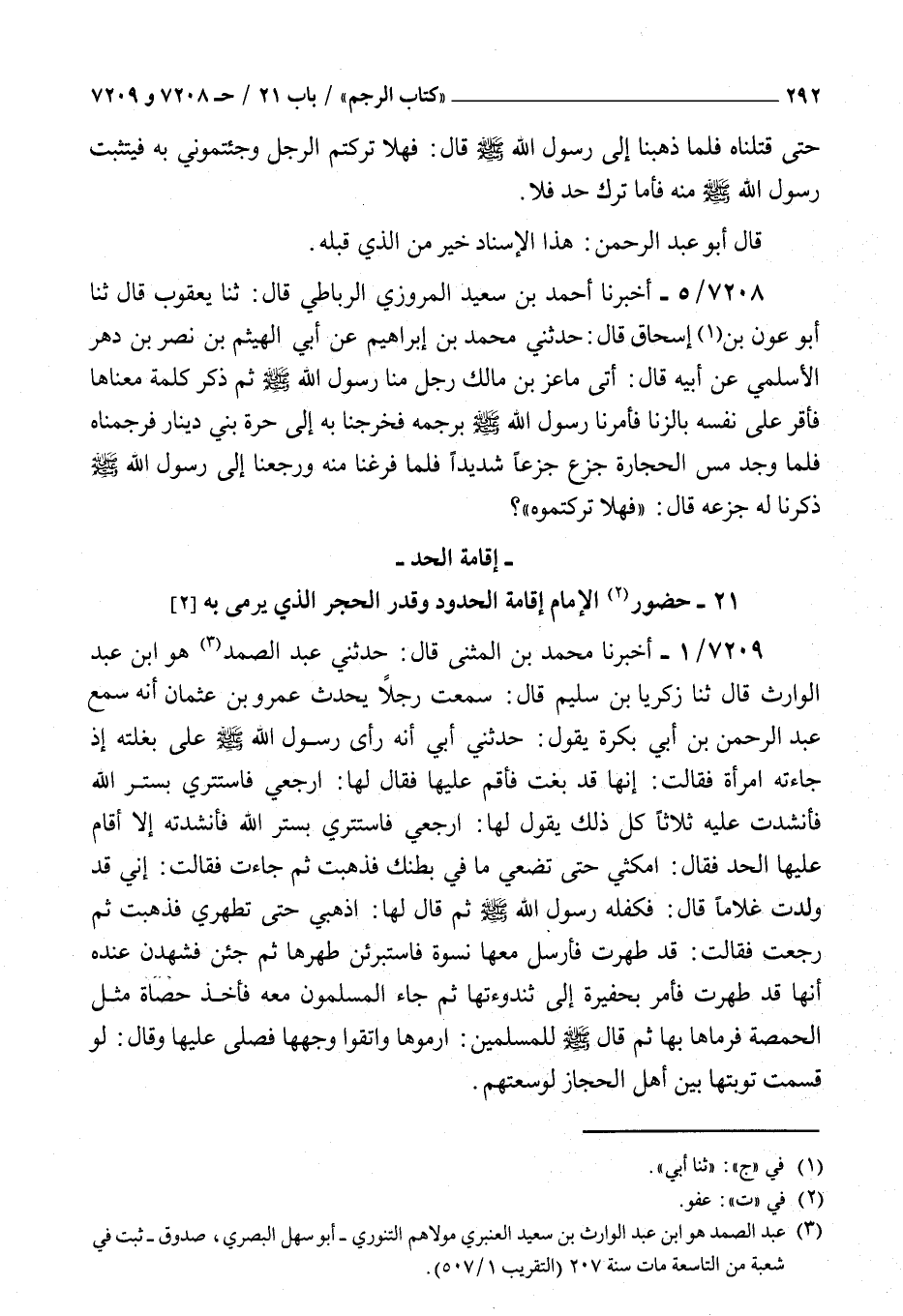 ( 21 حضور الإمام إقامة الحدود وقدر الحجر الذي يرمى به )