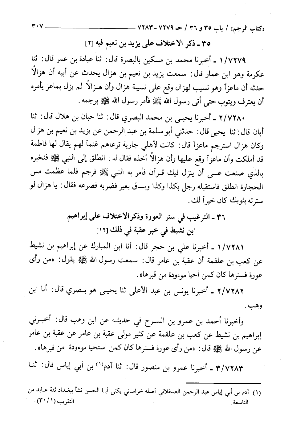 ( 36 الترغيب في ستر العورة وذكر الاختلاف على إبراهيم بن نشيط في خبر عقبة في ذلك )
