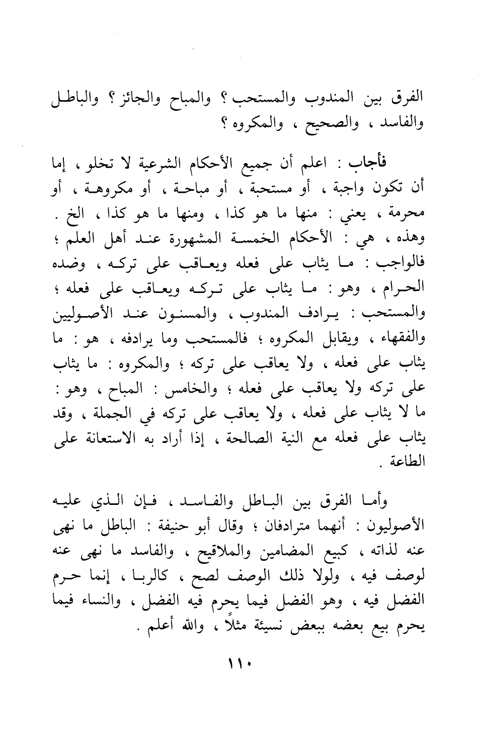 الفرق بين المندوب، والمستحب، والمباح، والجائز، والباطل، والفاسد، والصحيح، والمكروه؟