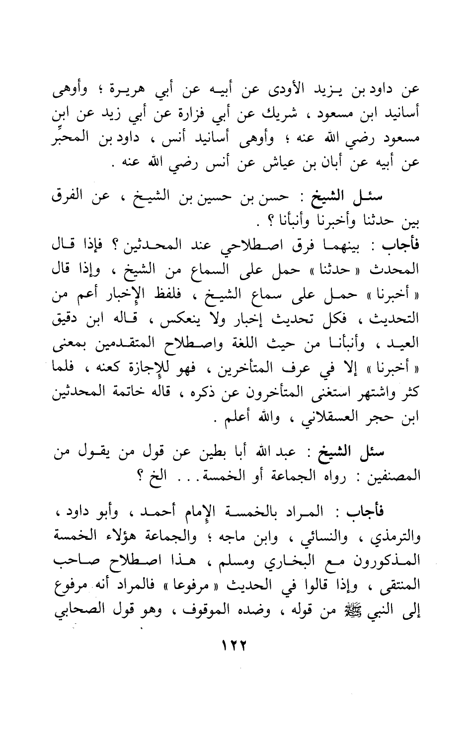 سئل الشيخ حسن بن حسين بن الشيخ: عن الفرق بين حَدَّثَنا وأخبرنا وأنبأنا؟