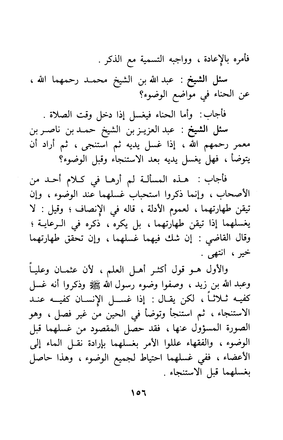 سئل الشيخ عبد الله بن الشيخ محمد، رحمهما الله: عن الحناء في مواضع الوضوء؟