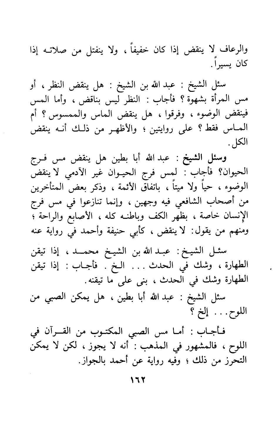 سئل الشيخ عبد الله بن الشيخ: هل ينقض النظر، أو مس المرأة بشهوة؟