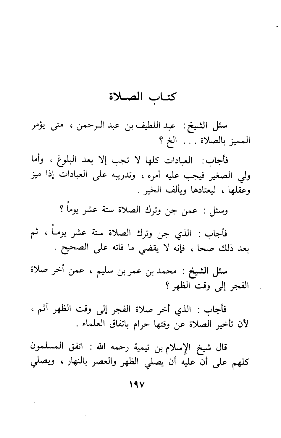 سئل الشيخ عبد اللطيف بن عبد الرحمن: متى يؤمر المميز بالصلاة ... إلخ؟