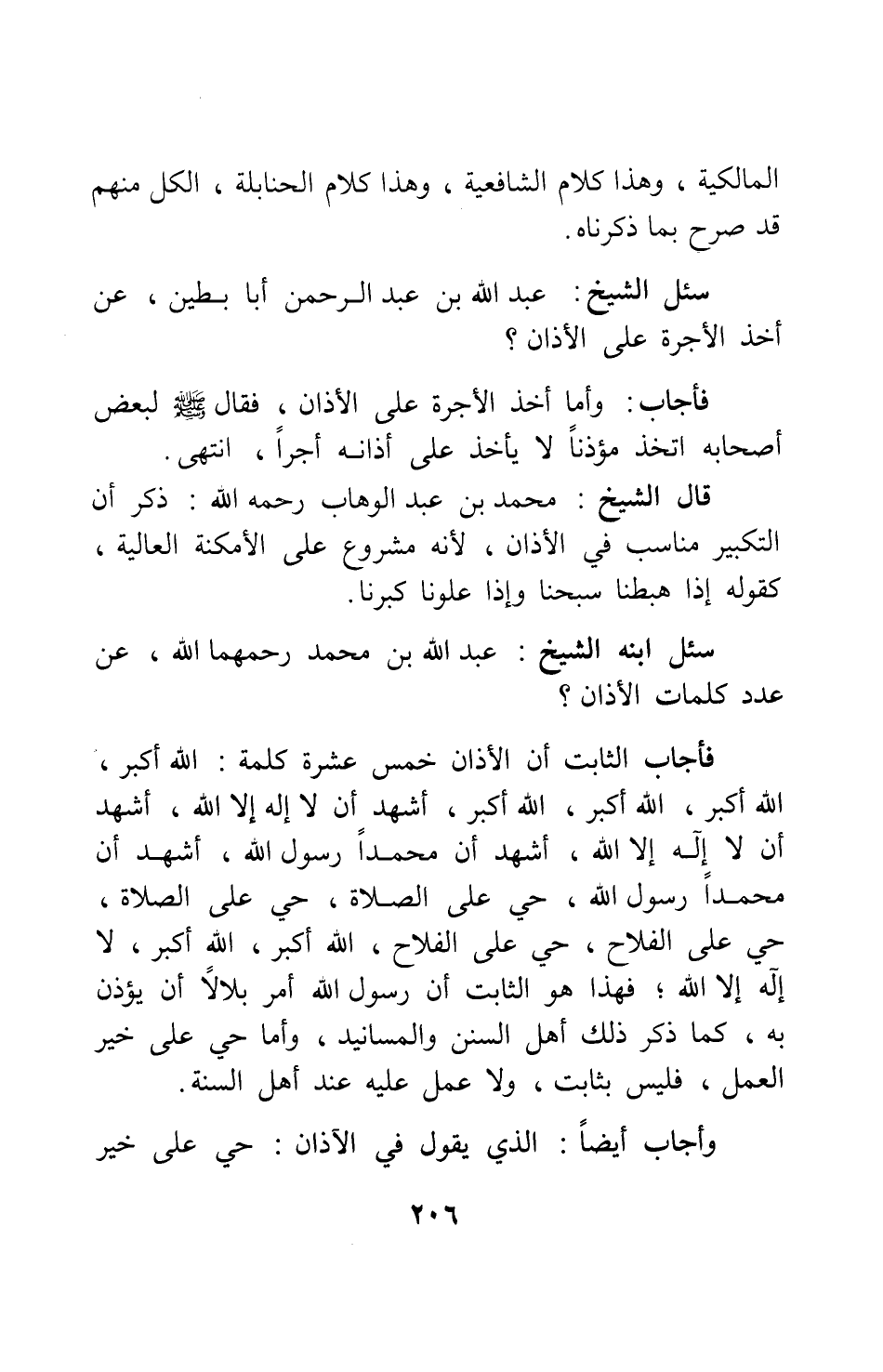 سئل ابنه: الشيخ عبد الله بن محمد، رحمهما الله، عن عدد كلمات الأذان؟