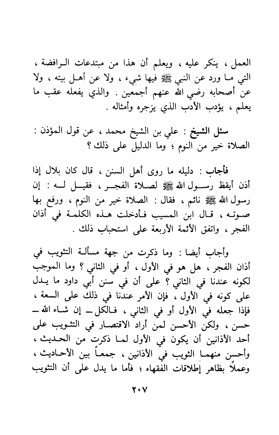 سئل الشيخ علي بن الشيخ محمد: عن قول المؤذن: الصلاة خير من النوم، وما الدليل على ذلك؟