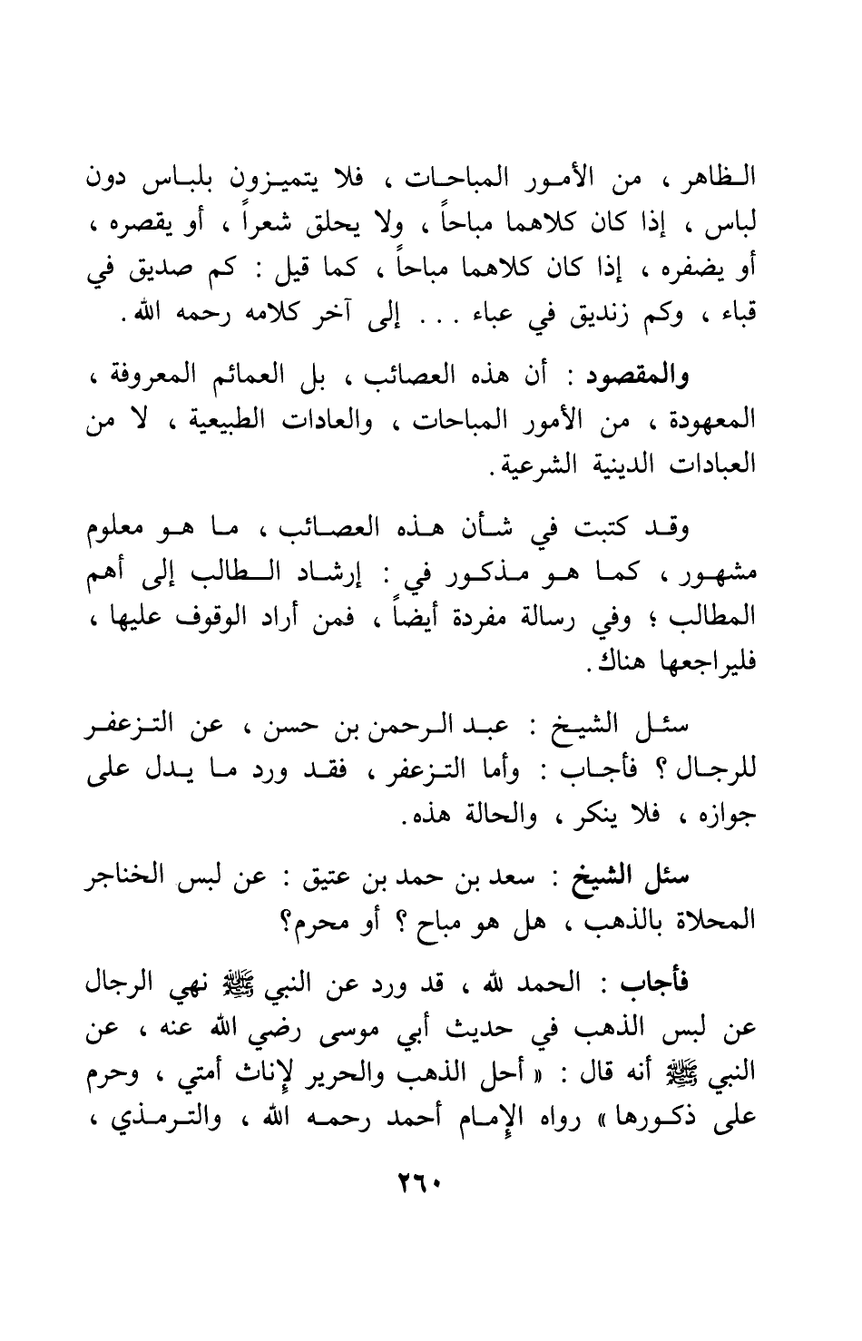 سئل الشيخ سعد بن حمد بن عتيق: عن لبس الخناجر المحلاة بالذهب، هل هو مباح أو محرم؟