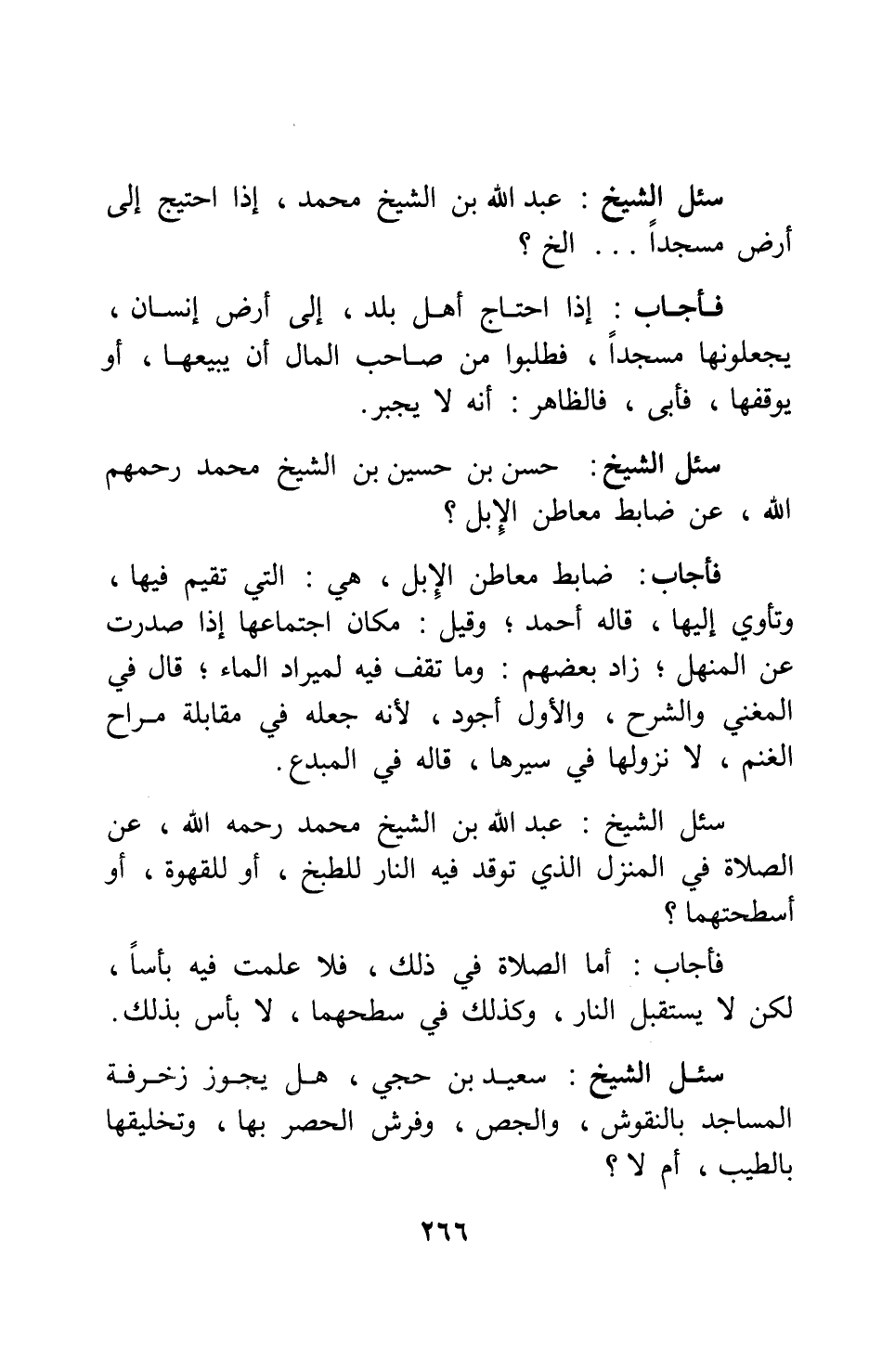 سئل الشيخ حسن بن حسين بن الشيخ محمد، رحمهم الله: عن ضابط معاطن الإبل؟