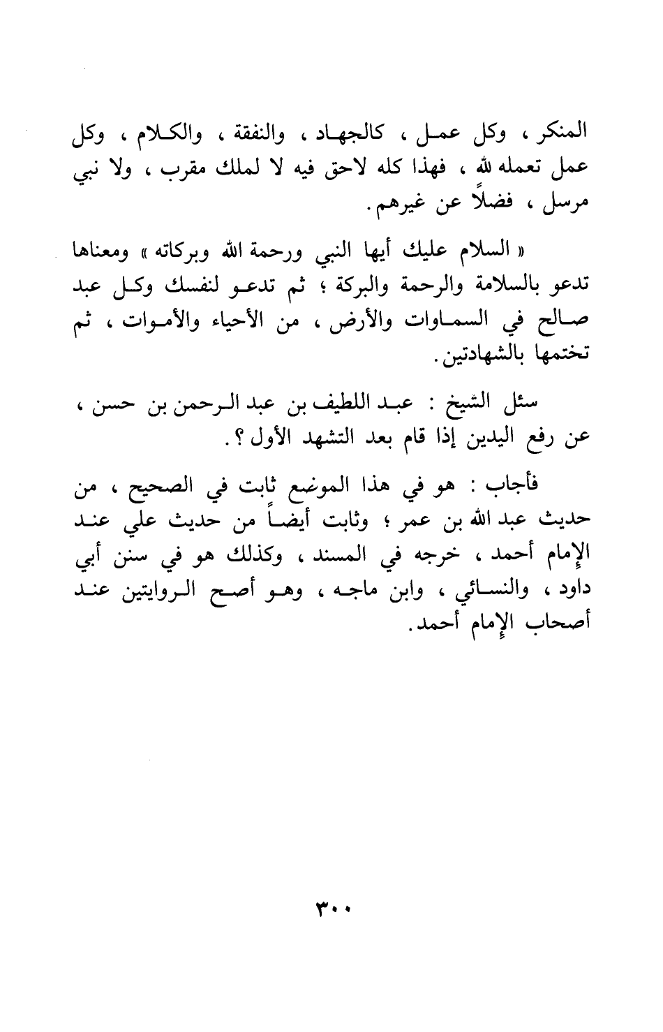 سئل الشيخ عبد اللطيف بن عبد الرحمن بن حسن، عن رفع اليدين إذا قام بعد التشهد الأول؟