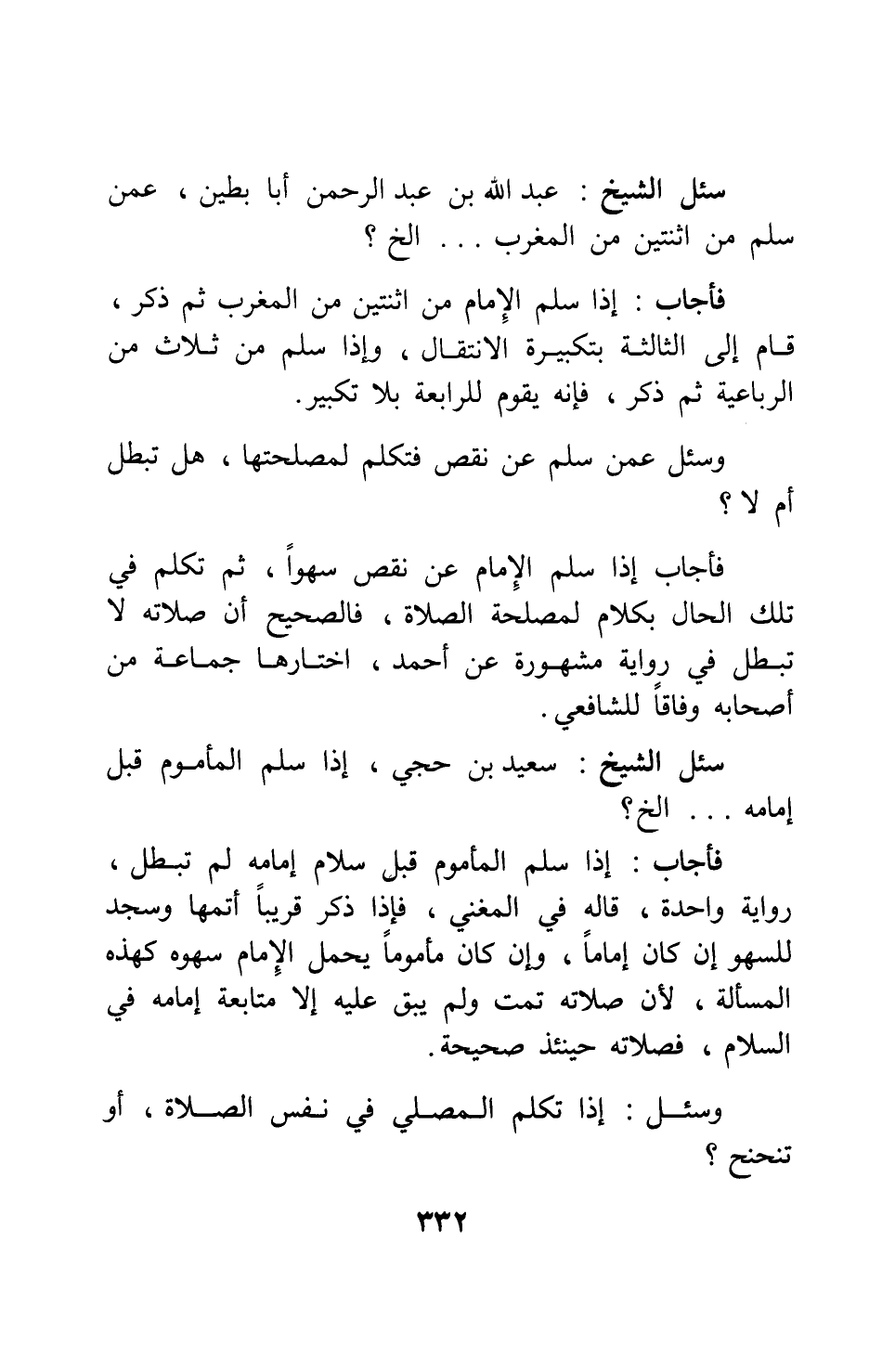 سئل الشيخ عبد الله بن عبد الرحمن أبا بطين: عمن سلم من اثنتين من المغرب ... إلخ؟