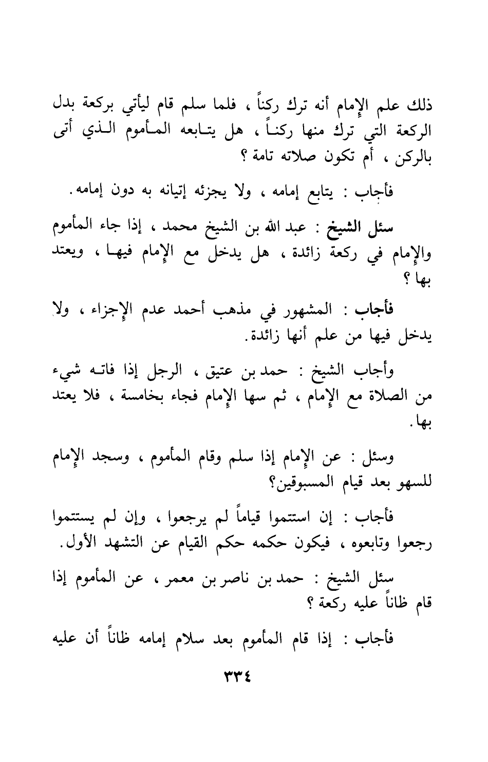 سئل الشيخ حمد بن ناصر بن معمر: عن المأموم إذا قام ظاناً عليه ركعة؟