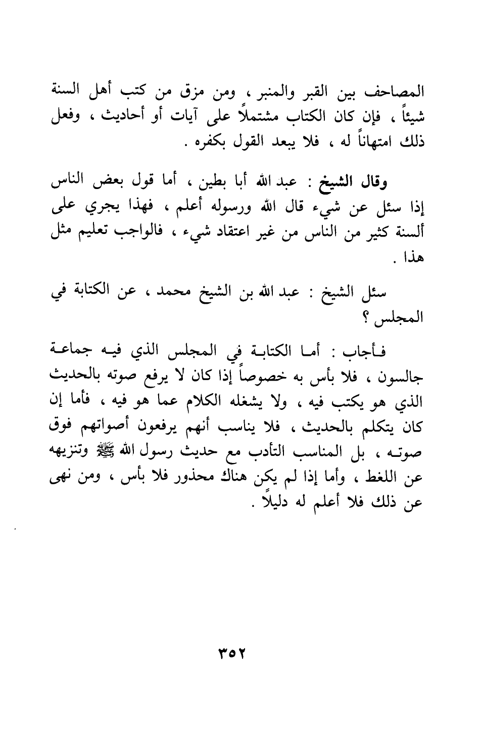 سئل الشيخ عبد الله بن الشيخ محمد: عن الكتابة في المجلس؟