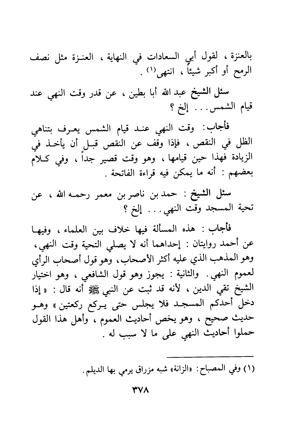 سئل الشيخ عبد الله أبا بطين: عن قدر وقت النهي عند قيام الشمس ... إلخ؟