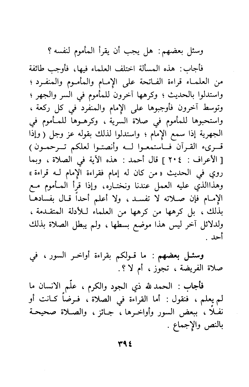 وسئل بعضهم: هل يجب أن يقرأ المأموم لنفسه؟