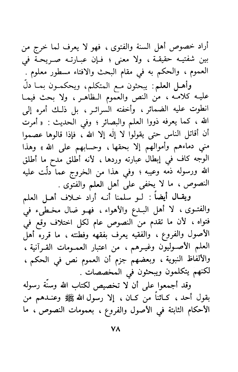 أراد خصوص أهل السنة والفتوى، فهو لا يعرف لما خرج من بين شفتيه حقيقة، ولا معنى; فإن عبارته صريحة في العموم، والحكم به في مقام البحث والإفتاء مسطور معلوم.