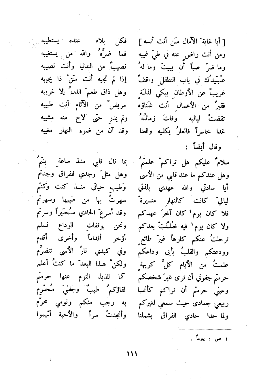 فلا كان يوم (1) كان آخر عهدكم ... وقد أسرع الحادي سحيراً وسرتم