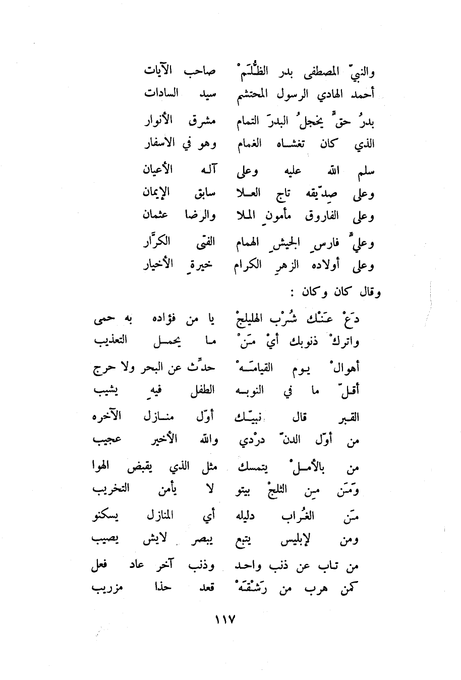 وعلى أولاده الزهر الكرام ... خيرة الأخيار وقال كان وكان: