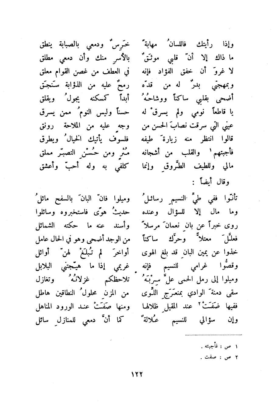 خذوا عن يمين البان قد بلغ الهوى ... أواخر لم تبلغ لهن أوائل