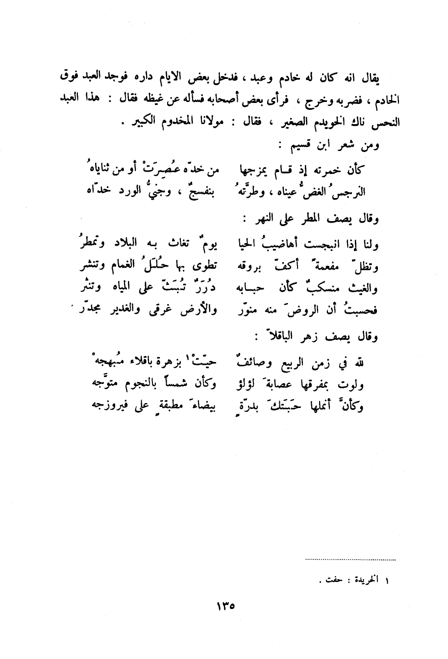 لله في زمن الربيع وصائف ... حيت (1) بزهرة باقلاء مبهجه
