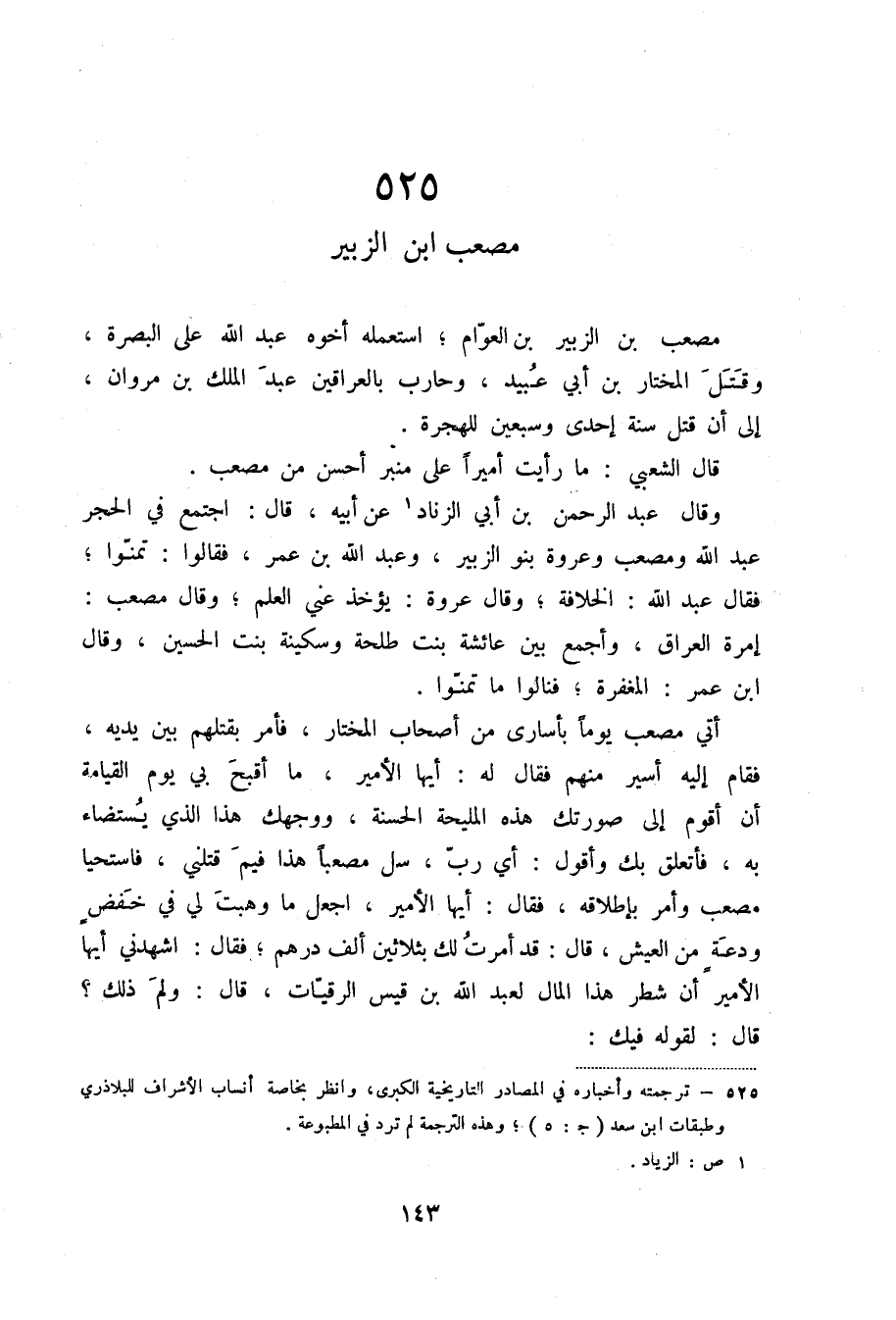 (1) ترجمته وأخباره في المصادر التاريخية الكبرى، وانظر بخاصة أنساب الأشراف للبلاذري وطبقات ابن سعد (ج؟: 5) ؛ وهذه الترجمة لم ترد في المطبوعة.