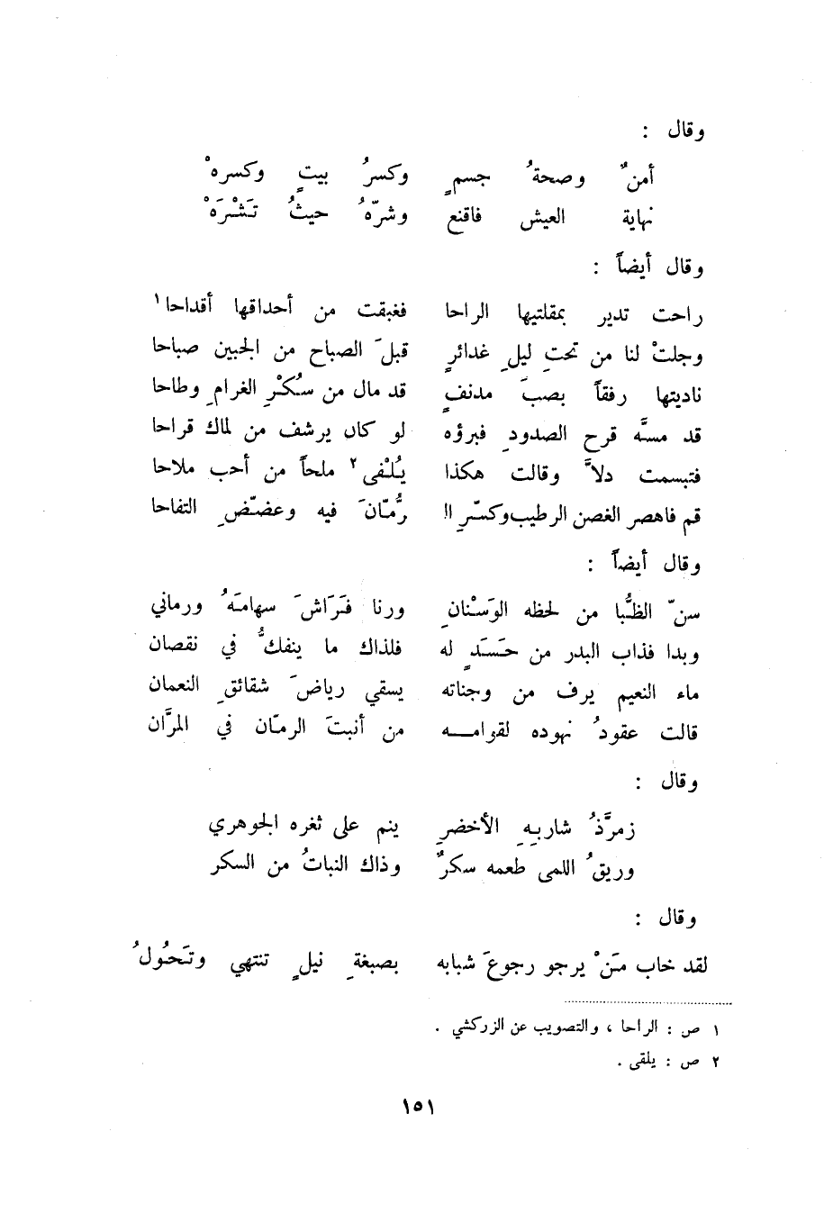 قم فاهصر الغصن الرطيب وكسر ال؟ ... رمان فيه وعضض التفاحا وقال أيضاً:
