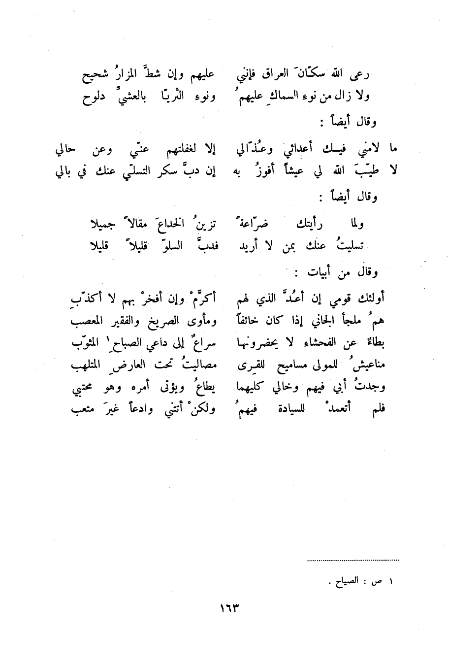 رعى الله سكان العراق فإنني ... عليهم وإن شط المزار شحيح