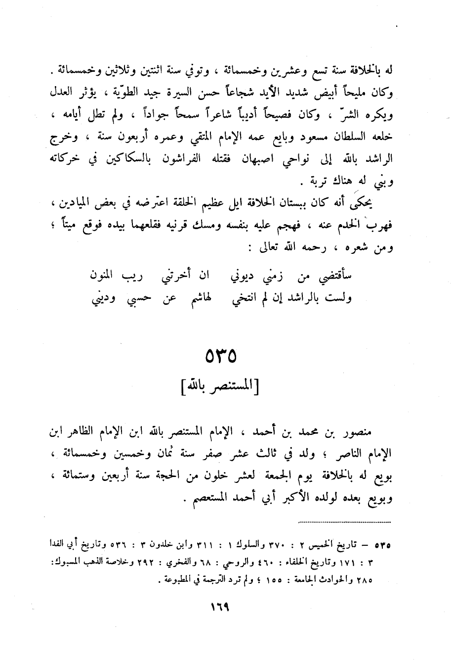 (1) تاريخ الخميس 2: 370 والسلوك 1: 311 وابن خلدون 3: 536 وتاريخ أبي الفدا 3: 171 وتاريخ الخلفاء: 460 والروحي: 68 والفخري: 292 وخلاصة الذهب المسبوك: 285 والحوادث الجامعة: 155؛ ولم ترد الترجمة في المطبوعة.