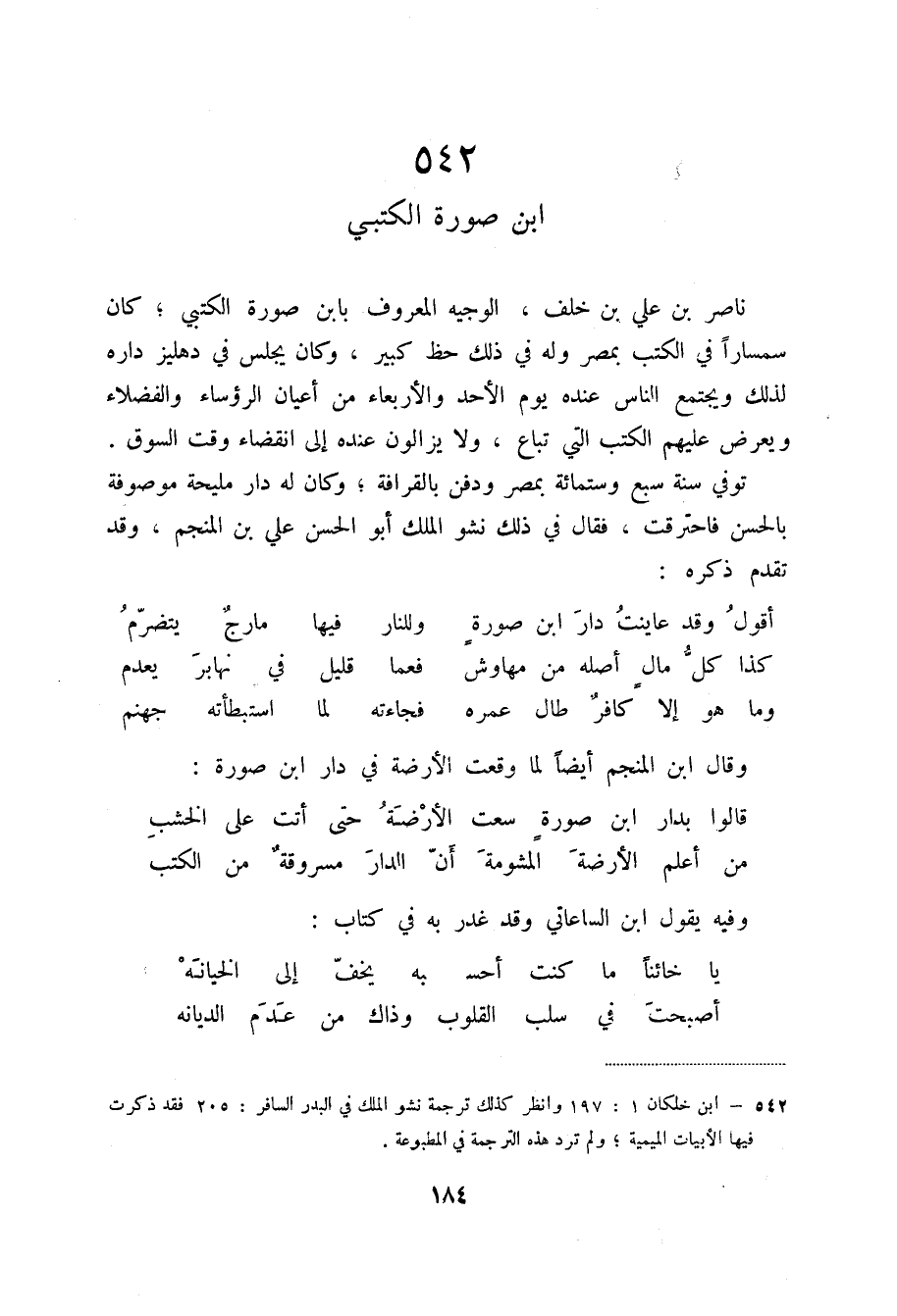 (1) ابن خلكان 1: 197 وانظر كذلك ترجمة نشو الملك في البدر السافر: 205 فقد ذكرت فيها ابيات الميمية؛ ولم تردج هذه الترجمة في المطبوعة.
