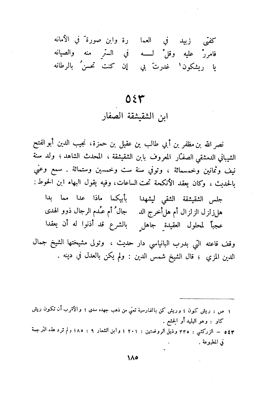 نصر الله بن مظفر بن أبي طالب بن عقير بن حمزة، نجيب الدين أبو الفتح الشيباني الدمشقي الصفار المعروف بابن الشقيشقة، المحدث الشاهد؛ ولد سنة نيف وثمانين وخمسمائة، وتوفي سنة ست وخمسين وستمائة. سمع وعني بالحديث، وكان يعقد الأنكحة تحت الساعات، وفيه يقول البهاء ابن الحوط: