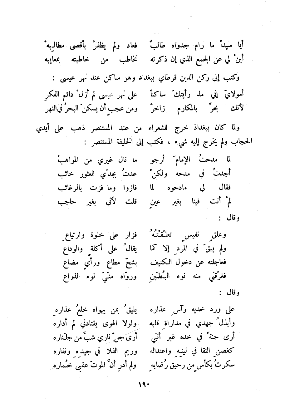 أبن لي عن الجمع الذي إن ذكرته ... تخاطب من خاطبته بمعايبه وكتب إلى ركن الدين قرطاي ببغداد وهو ساكن عند نهر عيسى: