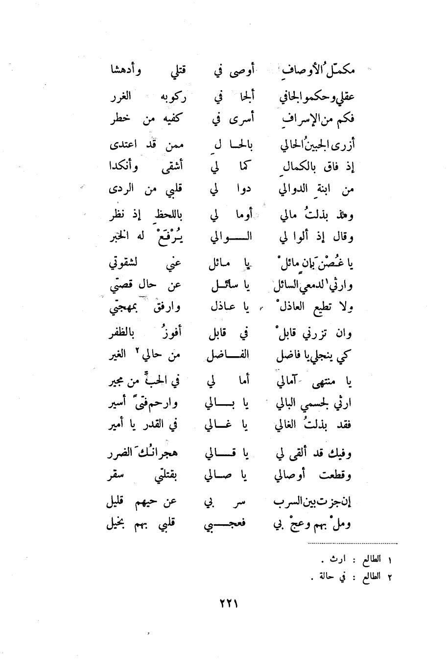 مكمل الأوصاف ... أوصى في قتلي وأدهشا
