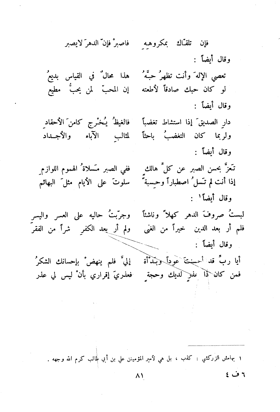 (1) بهامش الزركشي: كذب، بل هي لأمير المؤمنين علي بن أبي طالب كرم الله وجهه.