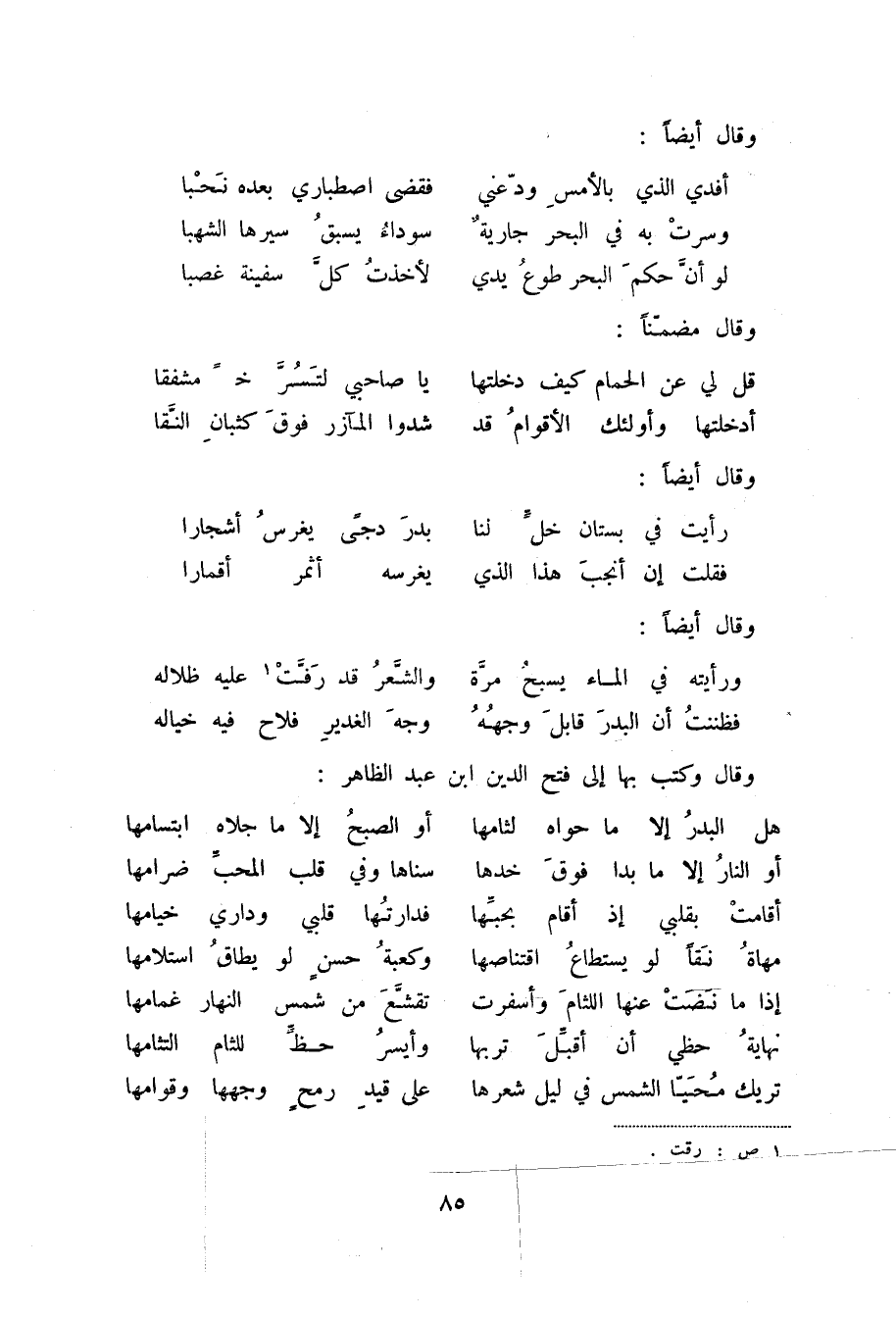 فظننت أن البدر قابل وجهه ... وجه الغدير فلاح فيه خياله وقال وكتب به إلى فتح الدين ابن عبد الظاهر: