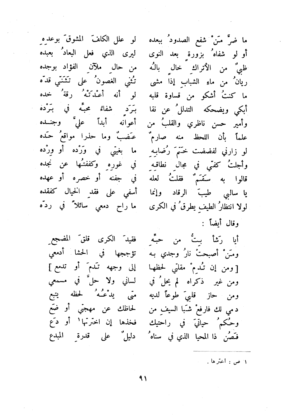 أو لو شفاه بزورة بعد النوى ... ليرى الذي فعل البعاد بعبده
