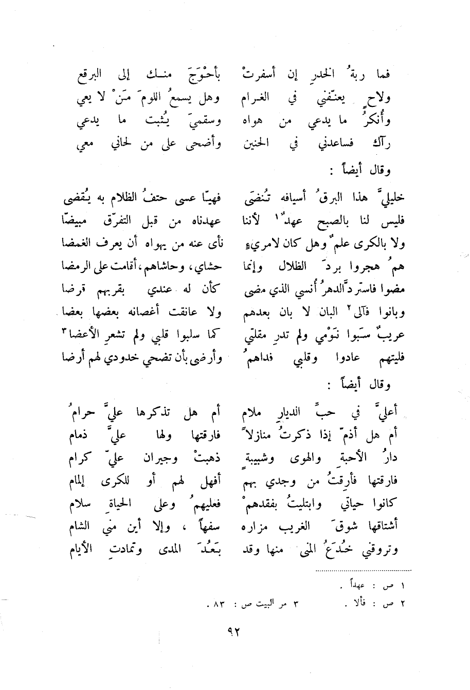فليتهم عادوا وقلبي فداهم ... وأرضي بأن تضحي خدودي لهم أرضا وقال أيضاً: