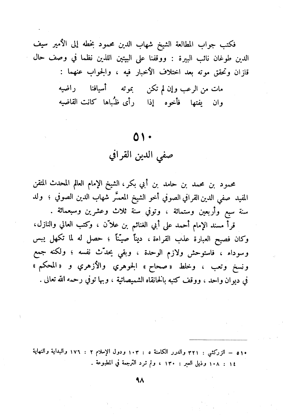 محمود بن محمد بن حامد بن ابي بكر، الشيخ الإمام العالم المحدث المتقن المفيد صفي الدين القرافي الصوفي أخو الشيخ المعمر شهاب الدين الصوفي؛ ولد سنة سبع وأربعين وستمائة، وتوفي سنة ثلاث وعشرين وسبعمائة.