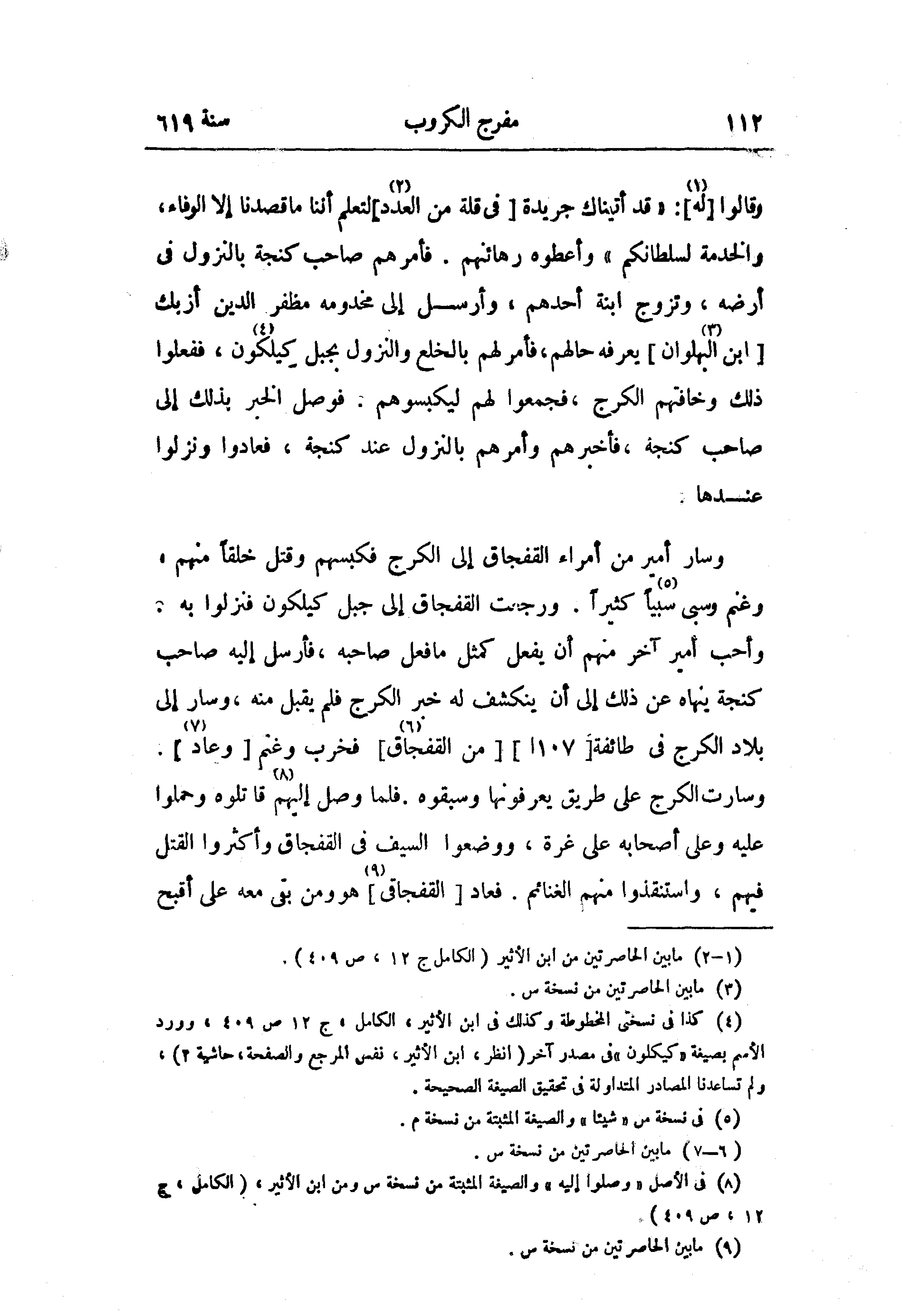 (¬1) ما بين الحاصرتين من ابن الأثير (الكامل ج 12، ص 409).