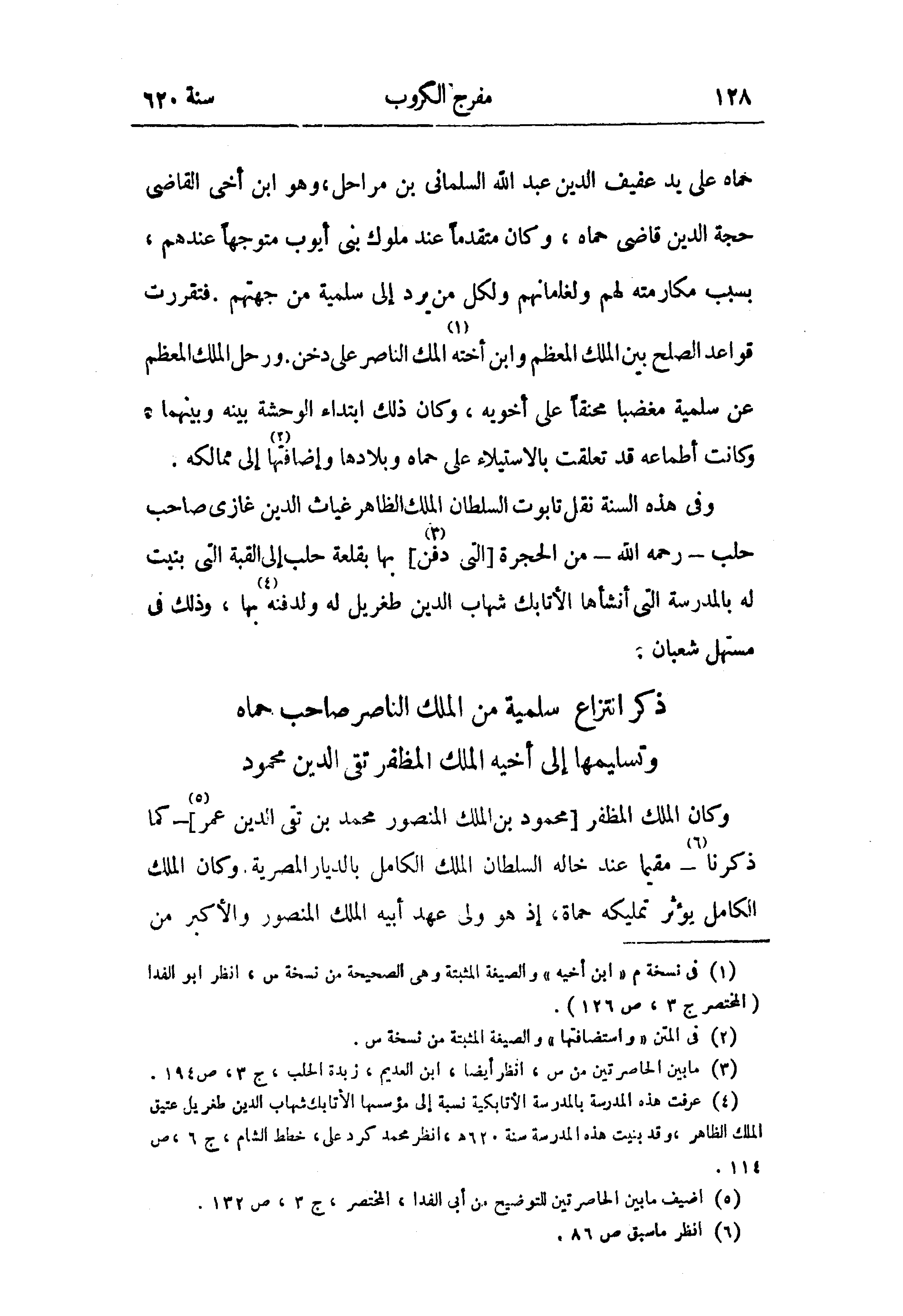(¬5) اضيف ما بين الحاصرتين للتوضيح من أبى الفدا، المختصر، ج 3، ص 132.