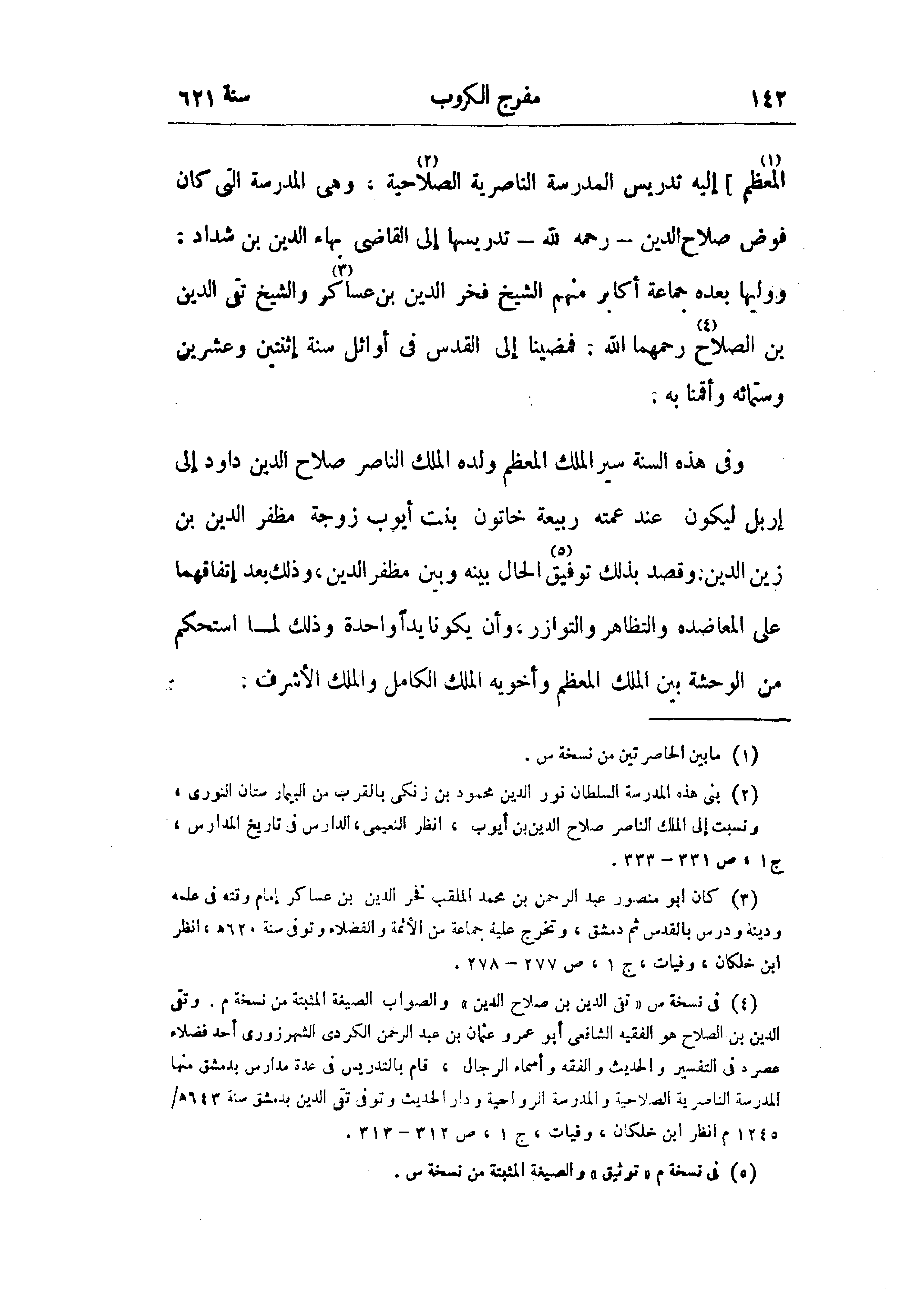 (¬4) في نسخة س «تقى الدين بن صلاح الدين» والصواب الصيغة المثبتة من نسخة م. وتقى الدين بن الصلاح هو الفقيه الشافعى أبو عمرو عثمان بن عبد الرحمن الكردى الشهرزورى أحد فضلاء عصره في التفسير والحديث والفقه وأسماء الرجال، قام بالتدريس في عدة مدارس بدمشق منها المدرسة الناصرية الصلاحية والمدرسة الرواحية ودار الحديث وتوفى تقى الدين بدمشق سنة 643 هـ - 1245 م انظر ابن خلكان، وفيات، ج 1، ص 312 - 313.