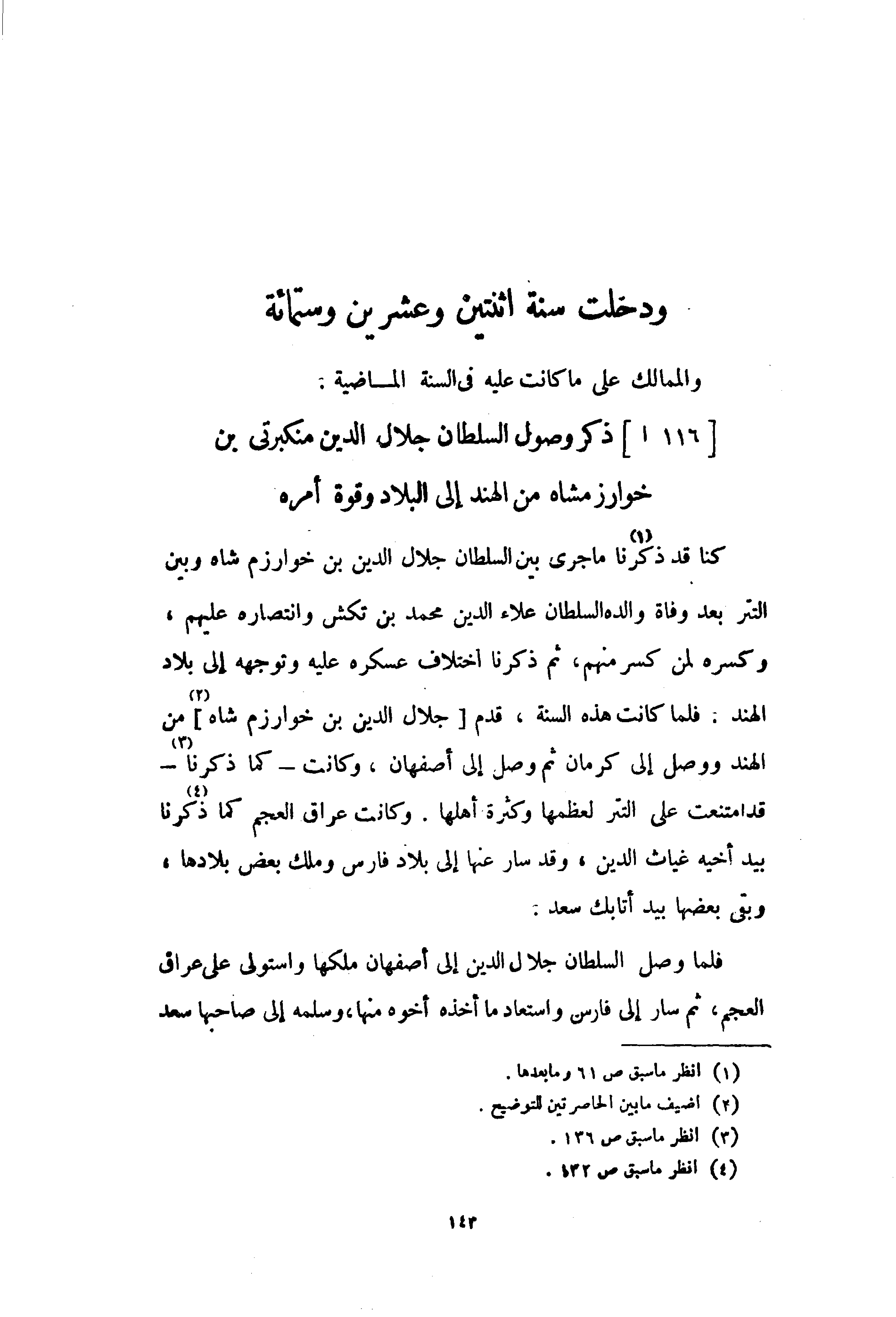 [116 ا] ذكر وصول السلطان جلال الدين منكبرتى بن خوارزمشاه من الهند إلى البلاد وقوة أمره