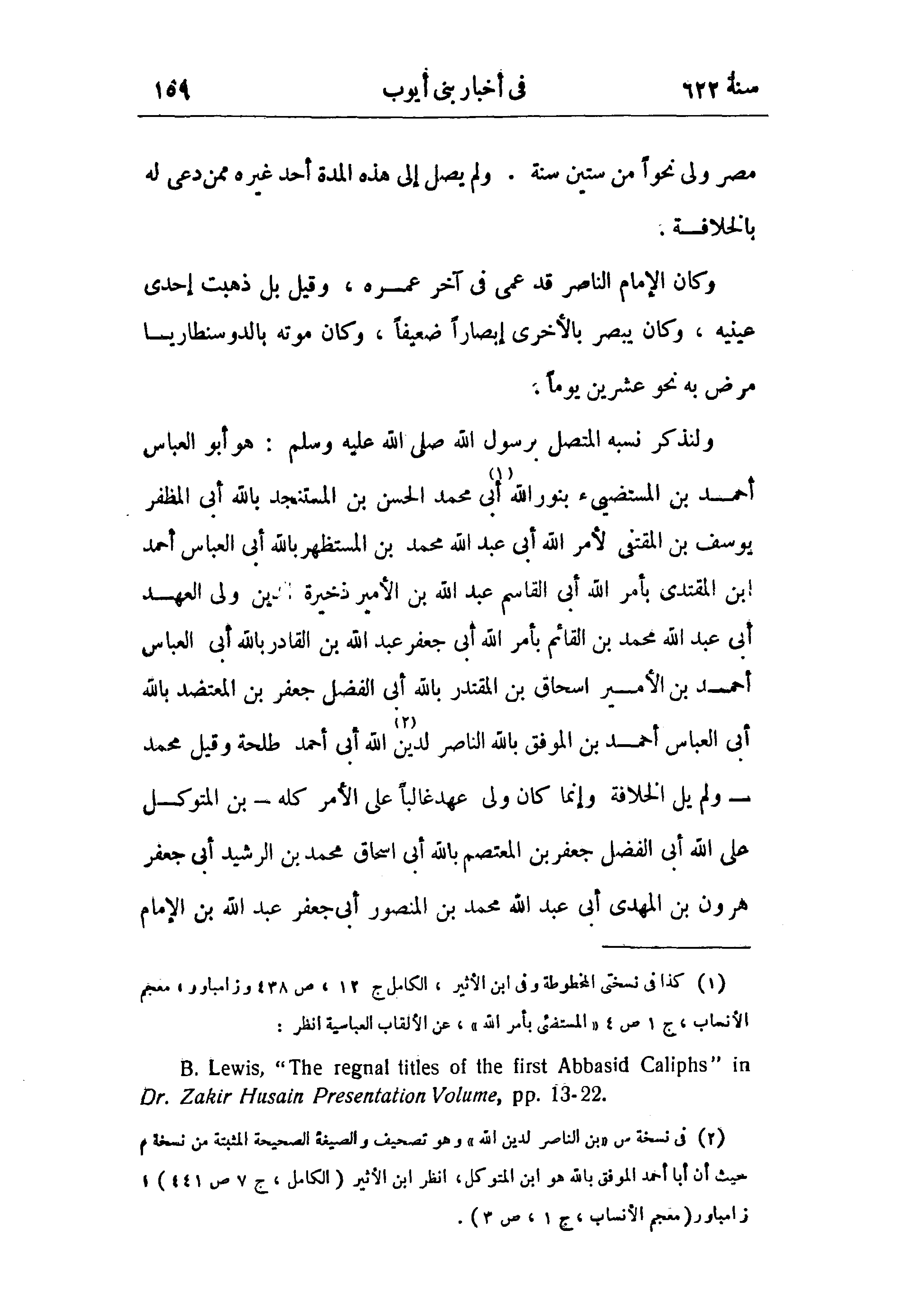 B. Lewis, " The regnal titles of the first Abbasid Caliphs" in Dr. Zakir Husain Presentation Volume,P P. 13 - 22.