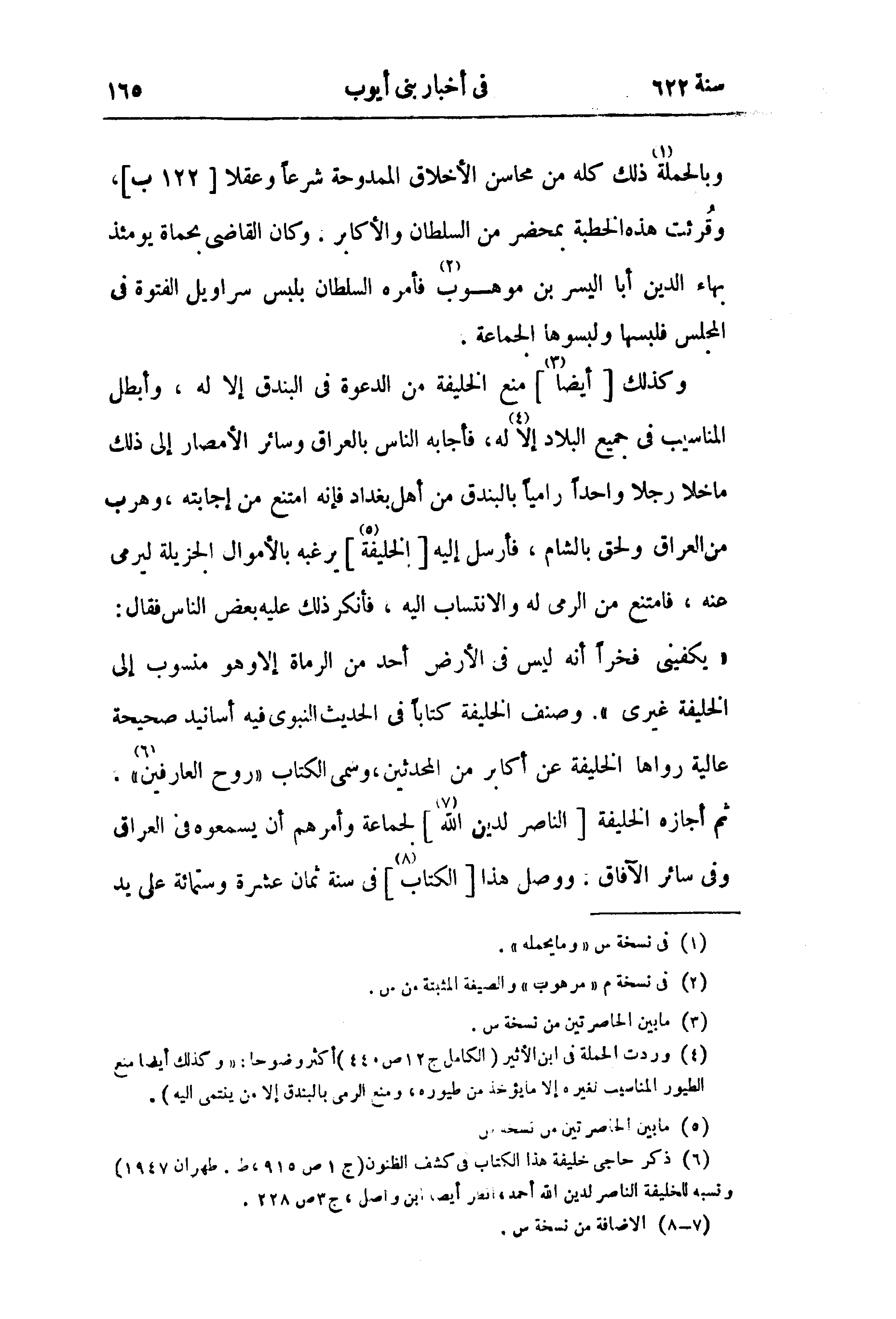 (¬6) ذكر حاجى خليفة هذا الكتاب في كشف الظنون (ج 1 ص 915، ط. طهران 1947) ونسبه للخليفة الناصر لدين الله أحمد، انظر أيضا ابن واصل، ج 3 ص 228.