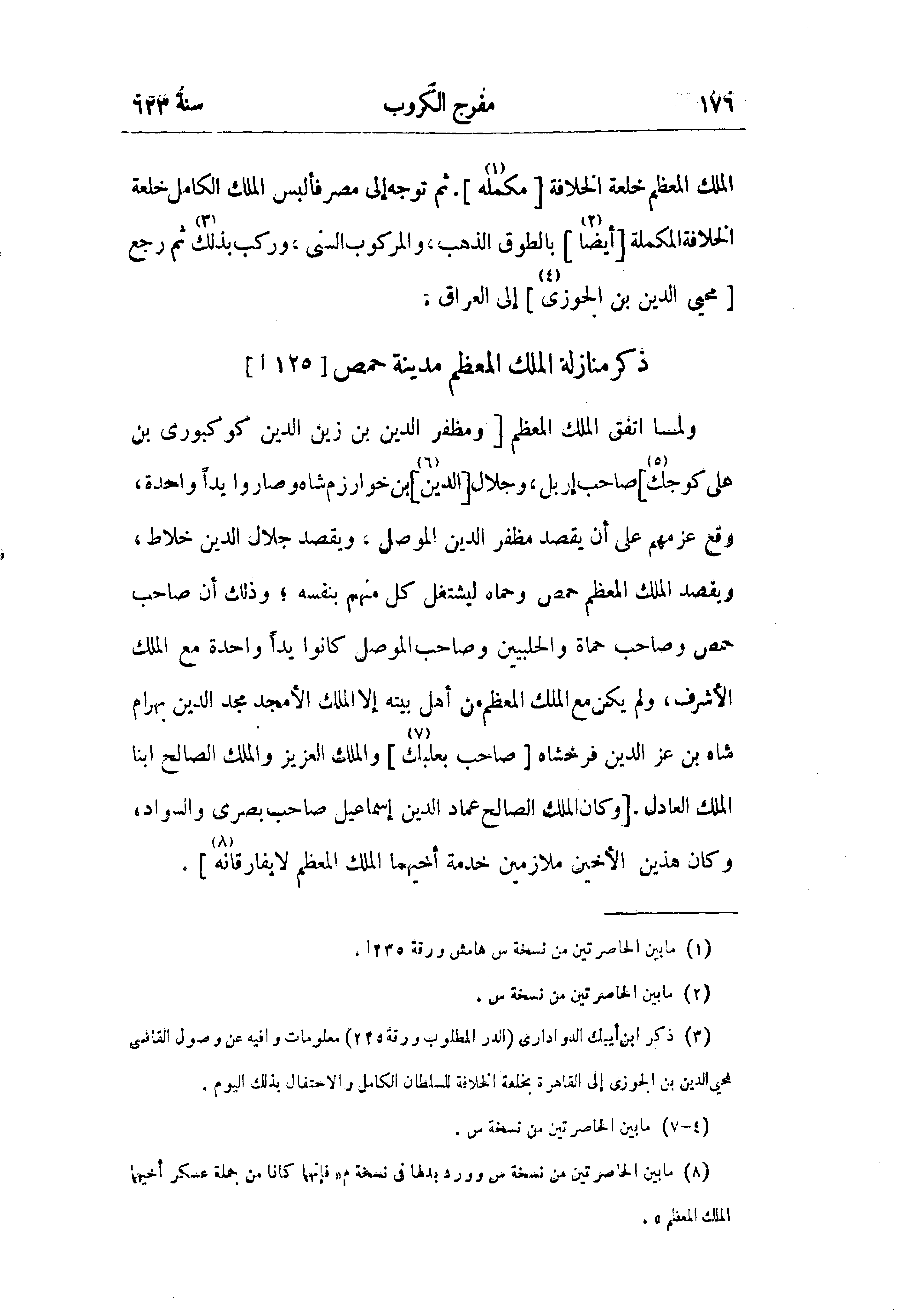 ذكر منازلة الملك المعظم مدينة حمص [125 ا]