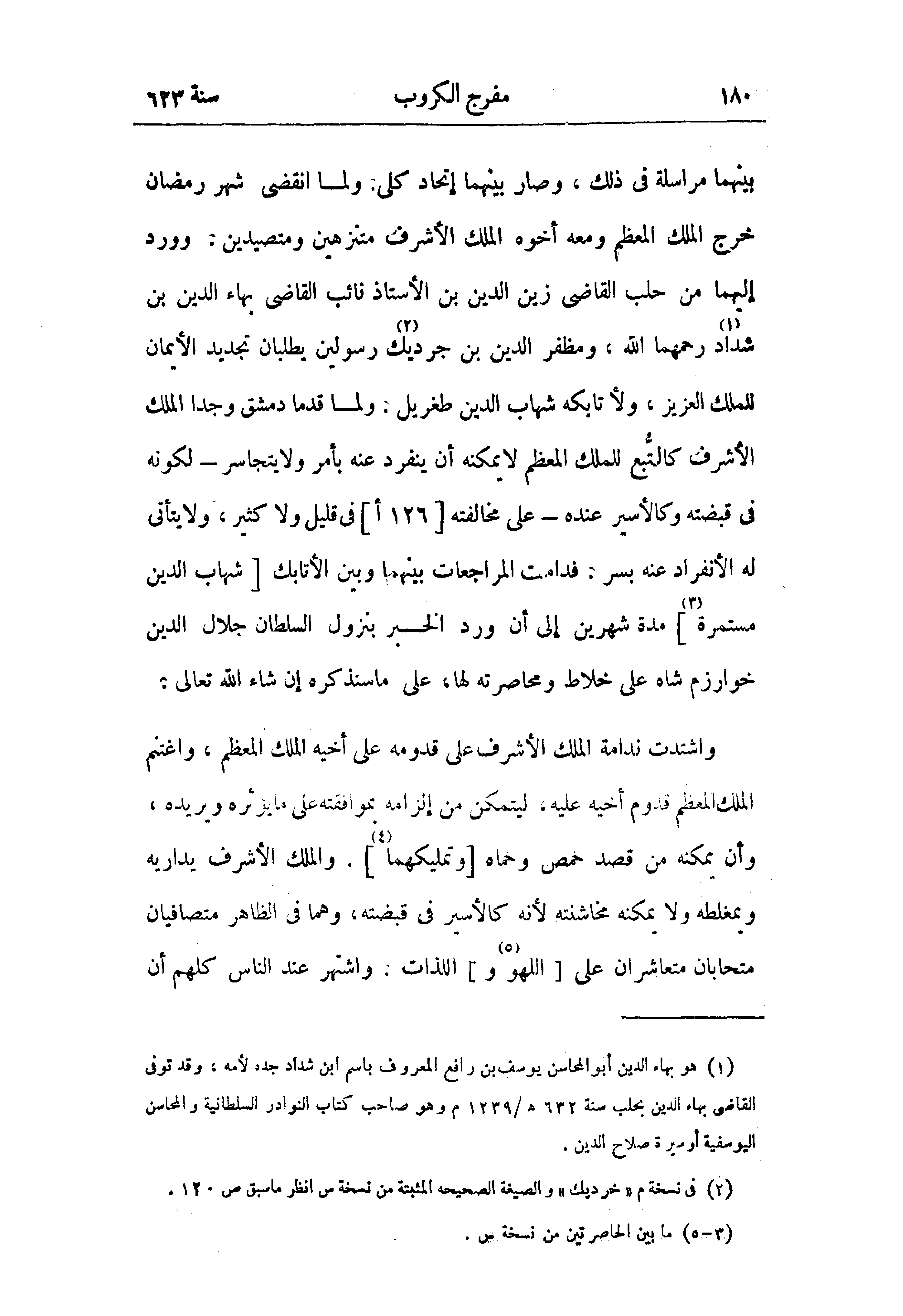 واشتدت ندامة الملك الأشرف على قدومه على أخيه الملك المعظم، واغتنم الملك المعظم قدوم أخيه عليه، ليتمكن من إلزامه بموافقته على ما يؤثره ويريده، وأن يمكنه من قصد حمص وحماه [وتمليكهما (¬4)]. والملك الأشرف يداريه ويمغلطه ولا يمكنه مخاشنته لأنه كالأسير في قبضته، وهما في الظاهر متصافيان متحابان متعاشران على [اللهو (¬5) و] اللذات. واشتهر عند الناس كلهم أن