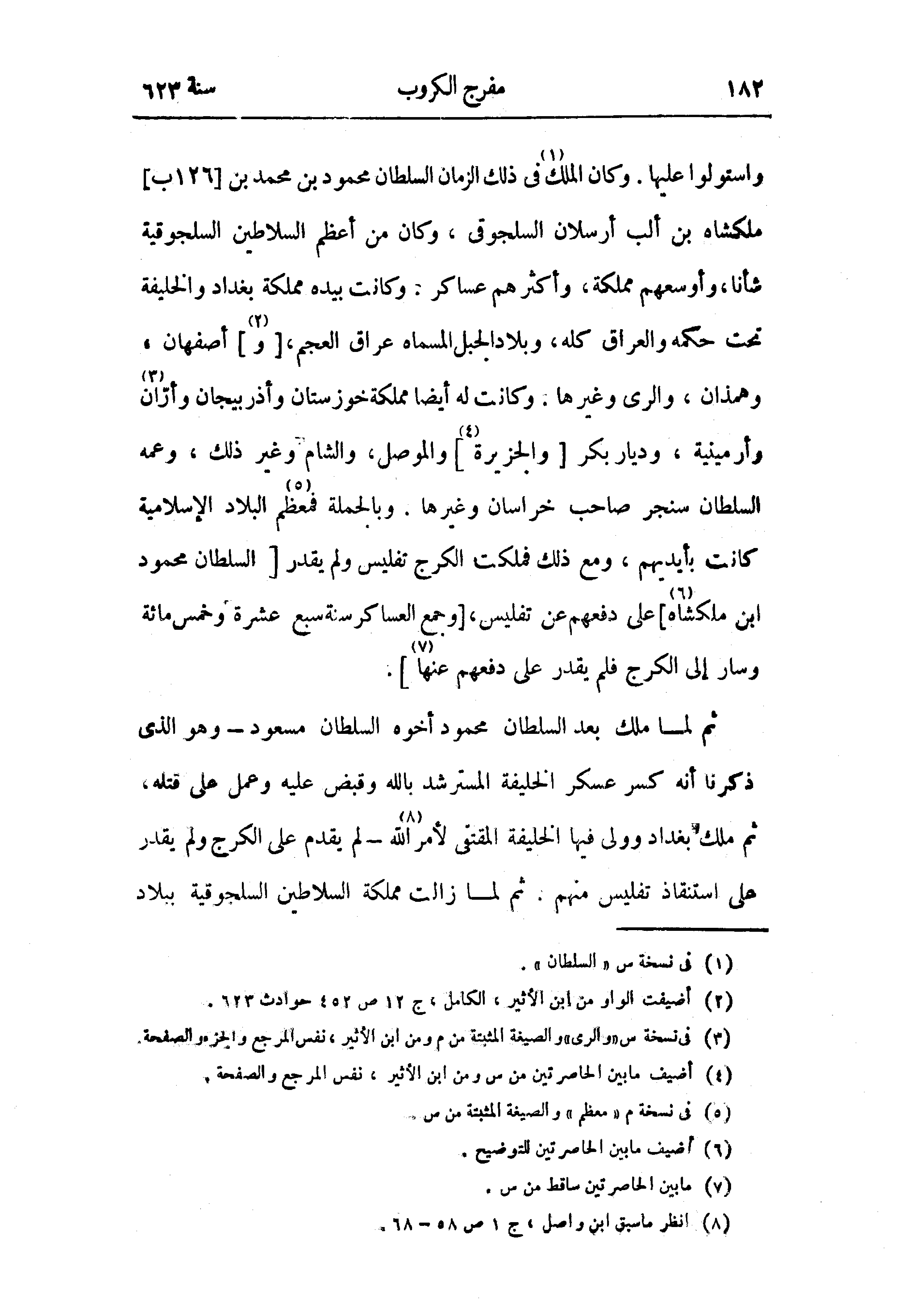 (¬2) أضيفت الواو من ابن الأثير، الكامل، ج 12 ص 452 حوادث 623.