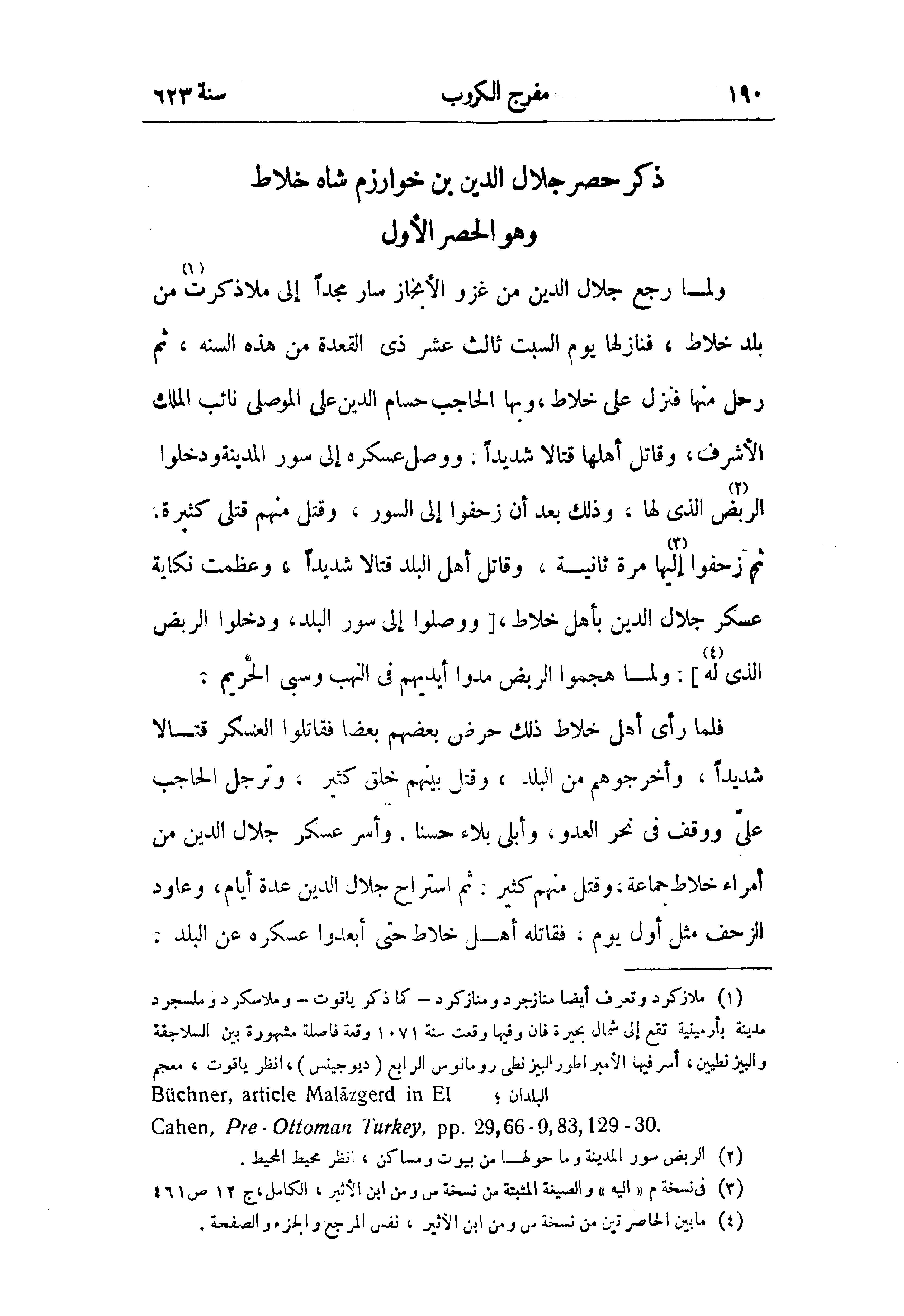 Buchner, article Malazgerd in EI Cahen, Pre - Ottoman Turkey, pp. 29, 66 - 9, 83, 129 - 130.