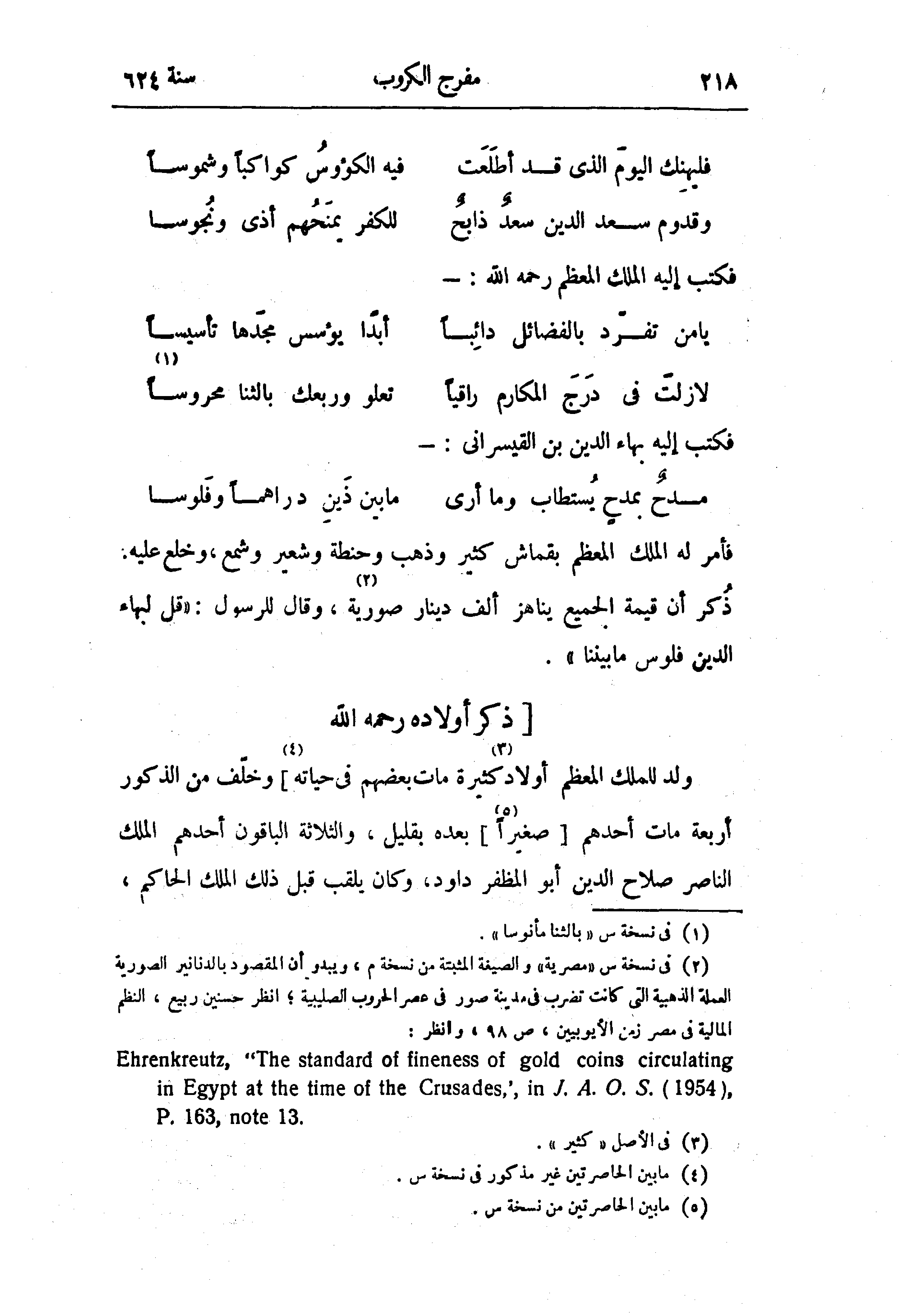 Ehrenkreutz, The standard of fineness of gold coins circulating in Egypt at the time of the Crusades, in J. A. O. S. (1954), P. 163, note 13.