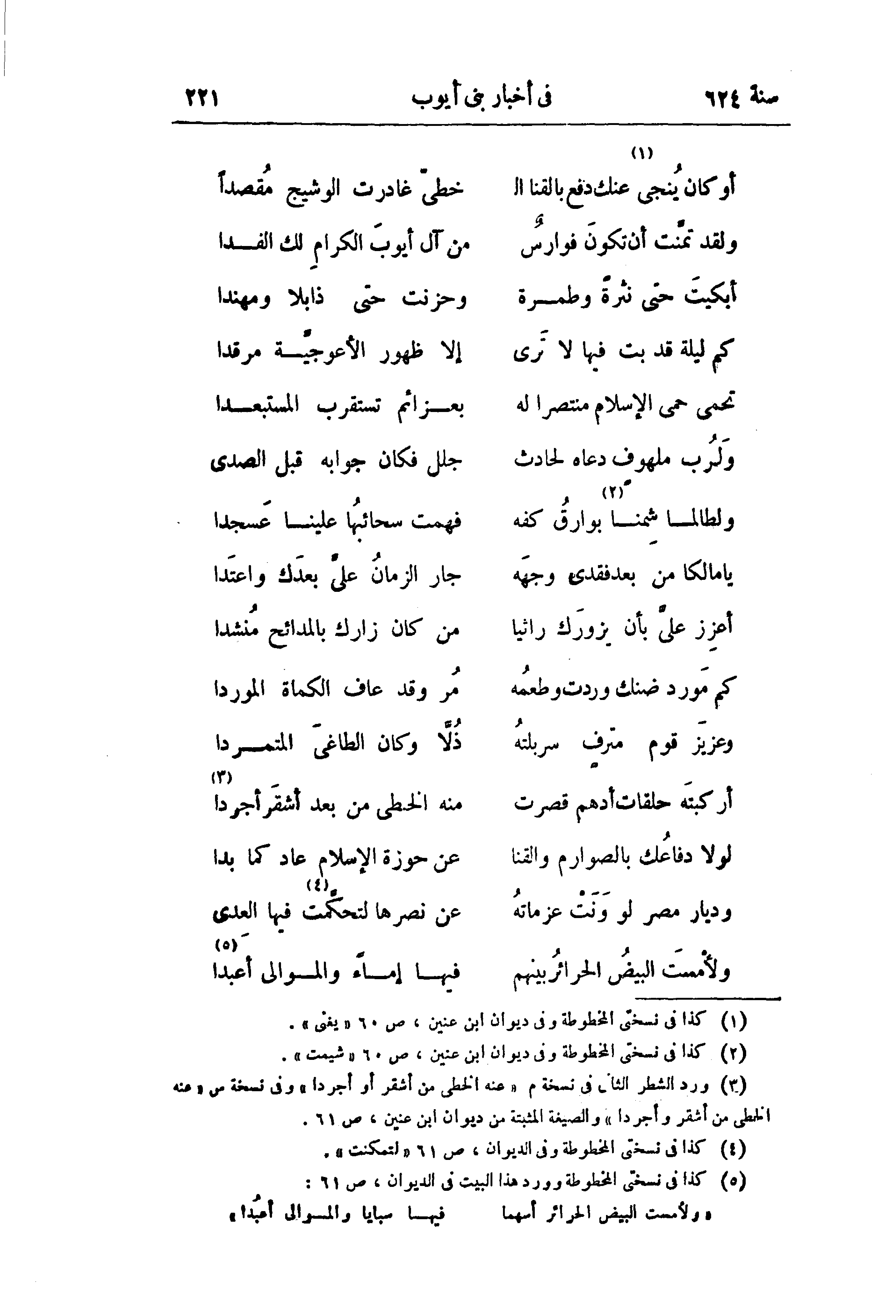 (¬5) كذا في نسختى المخطوطة وورد هذا البيت في الديوان، ص 61: «ولأمست البيض الحرائر أسهما فيها سبايا والموالى أعبدا»