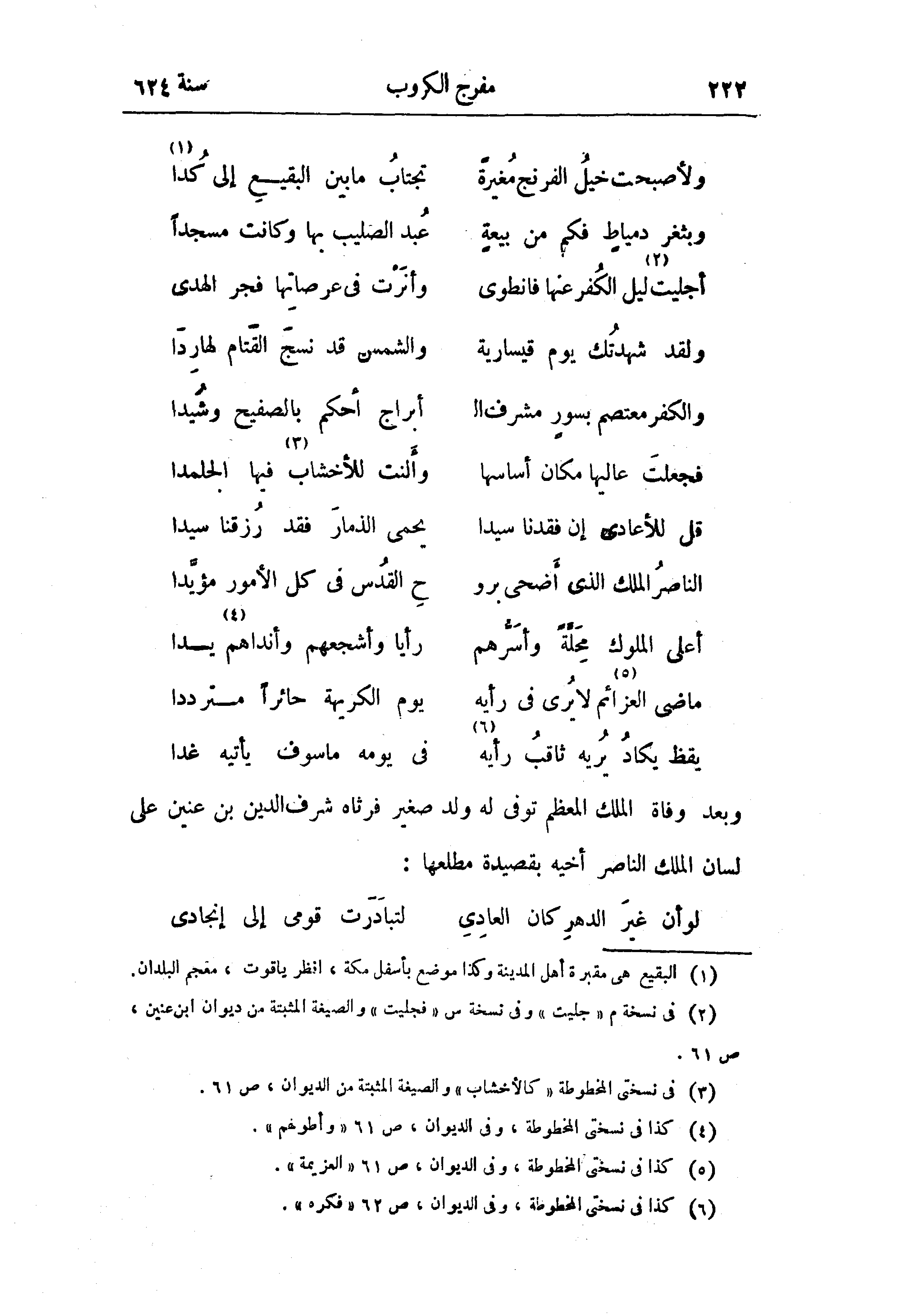 (¬2) في نسخة م «جليت» وفى نسخة س «فجليت» والصيغة المثبتة من ديوان ابن عنين، ص 61.