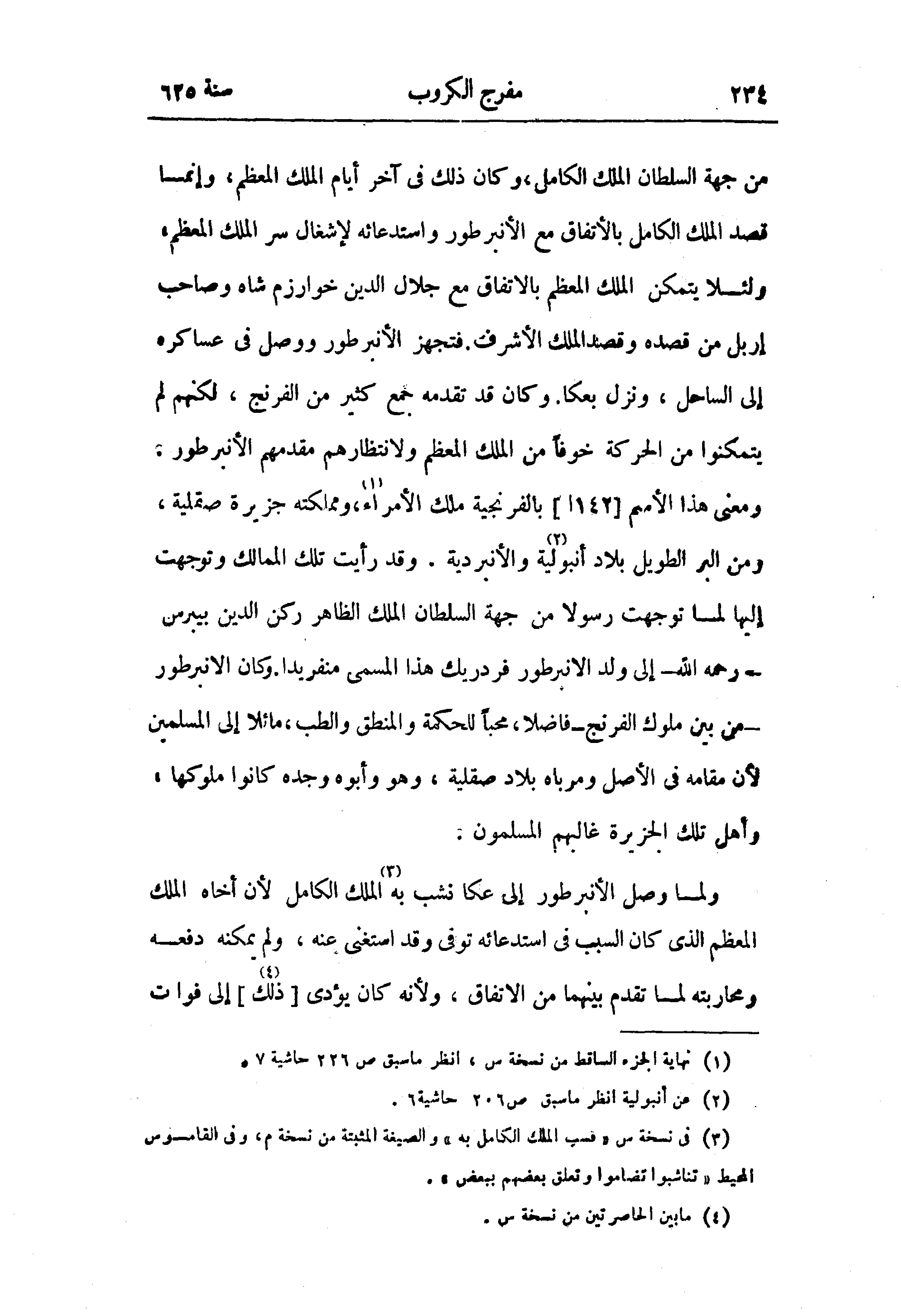 ومعنى هذا الأسم [142 ا] بالفرنجية ملك الأمراء (¬1)، ومملكته جزيرة صقلية، ومن البر الطويل بلاد أنبولية (¬2) والأنبردية. وقد رأيت تلك الممالك وتوجهت إليها لما توجهت رسولا من جهة السلطان الملك الظاهر ركن الدين بيبرس - رحمه الله - إلى ولد الانبراطور فردريك هذا المسمى منفريدا. وكان الانبرطور - من بين ملوك الفرنج - فاضلا، محبا للحكمة والمنطق والطب، مائلا إلى المسلمين لأن مقامه في الأصل ومرباه بلاد صقلية، وهو وأبوه وجده كانوا ملوكها، وأهل تلك الجزيرة غالبهم المسلمون.