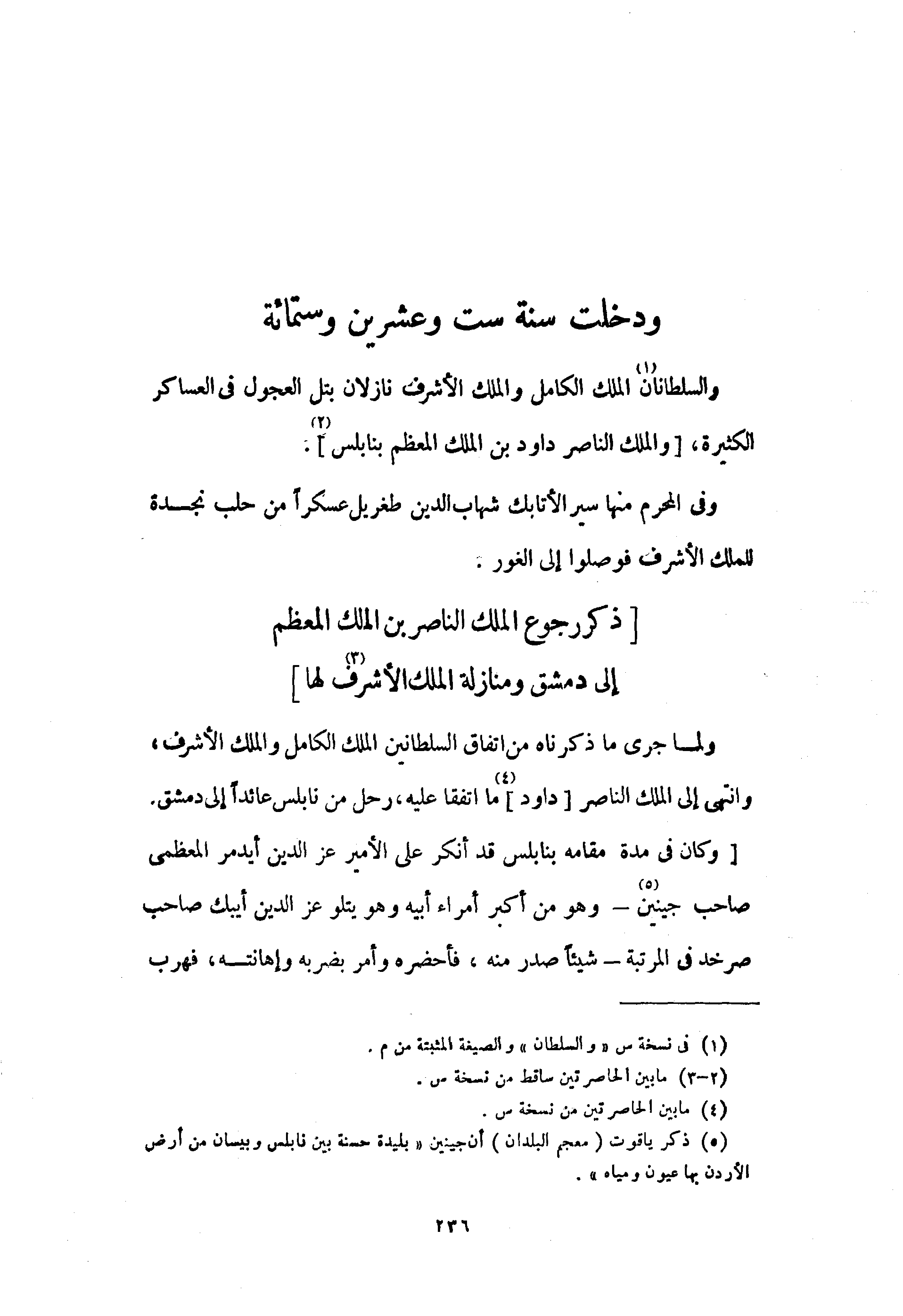 ولما جرى ما ذكرناه من اتفاق السلطانين الملك الكامل والملك الأشرف، وانتهى إلى الملك الناصر [داود] (¬4) ما اتفقا عليه، رحل من نابلس عائدا إلى دمشق.
